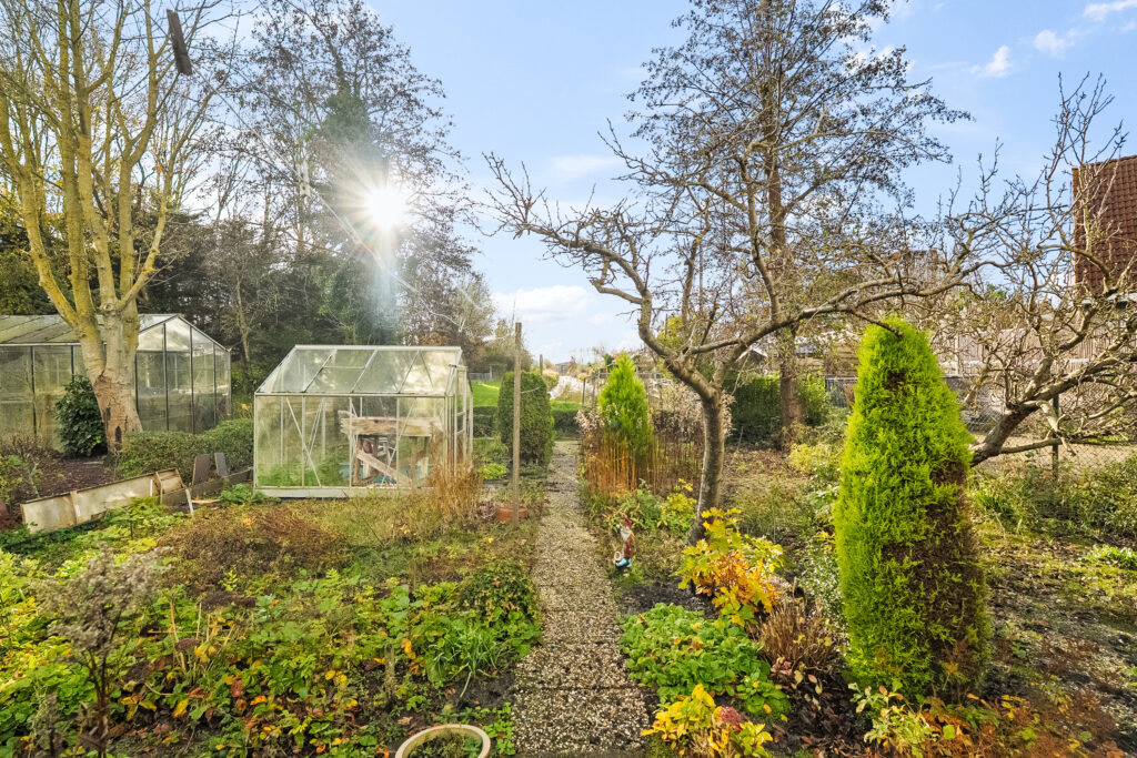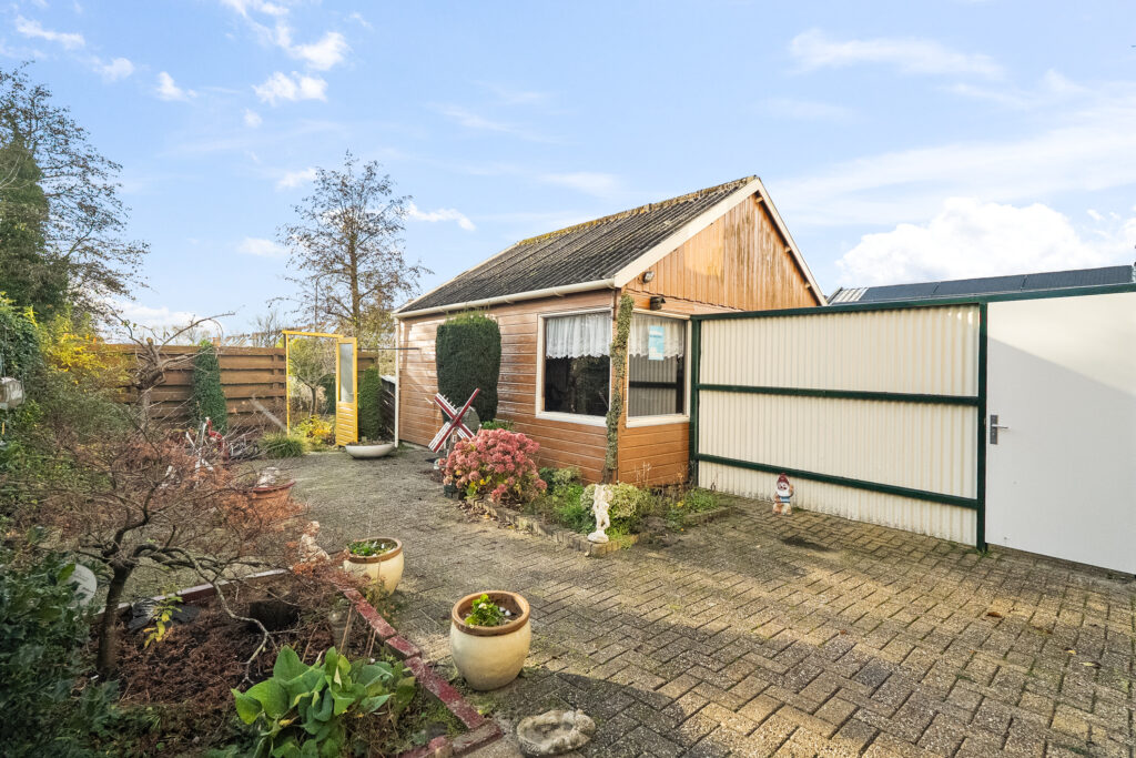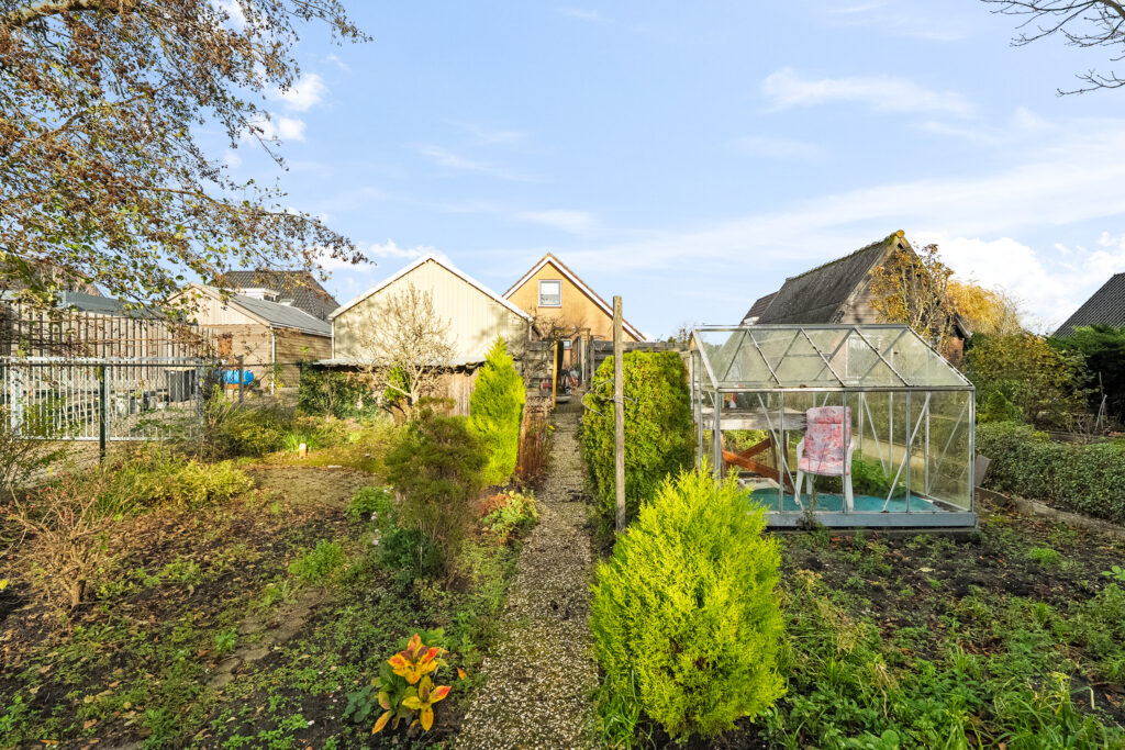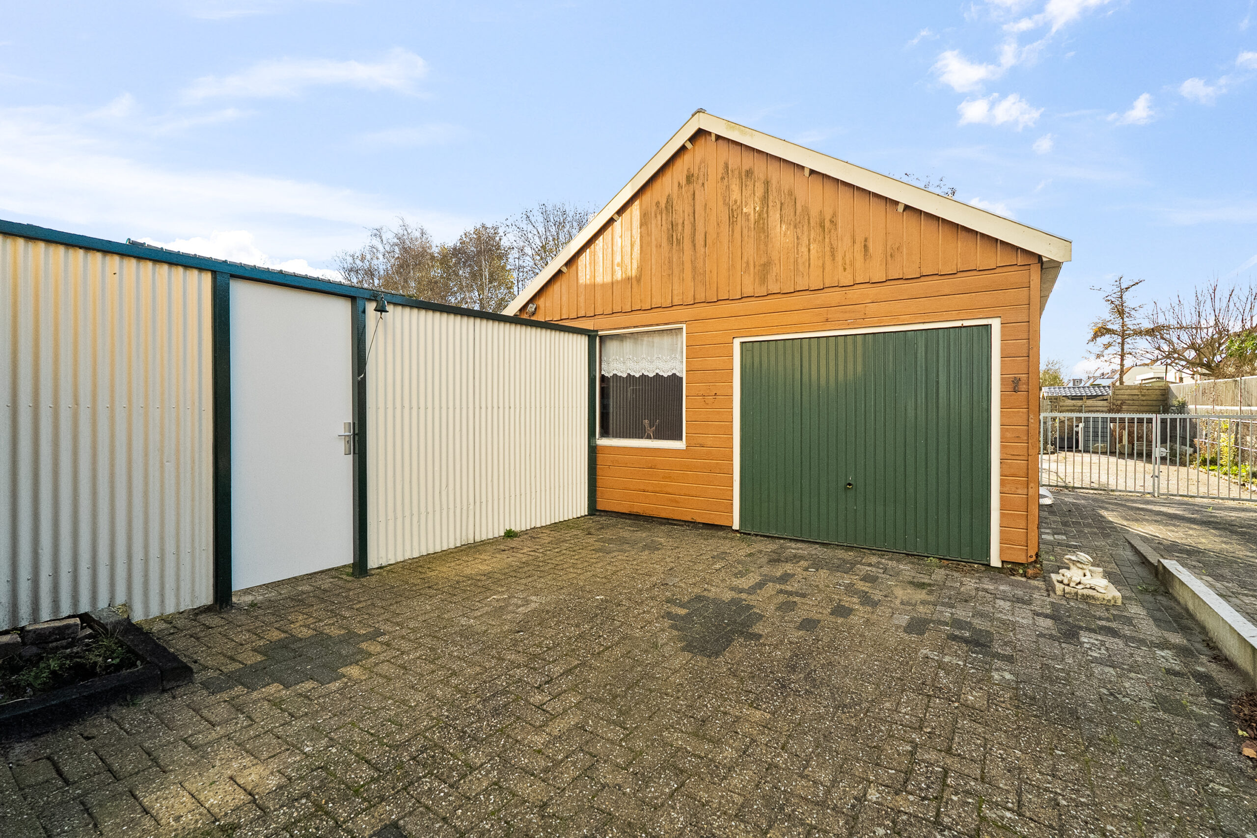 Fraai aangelegde achtertuin van circa 30 meter diep en een garage/schuur van circa 32 m² met overheaddeur.