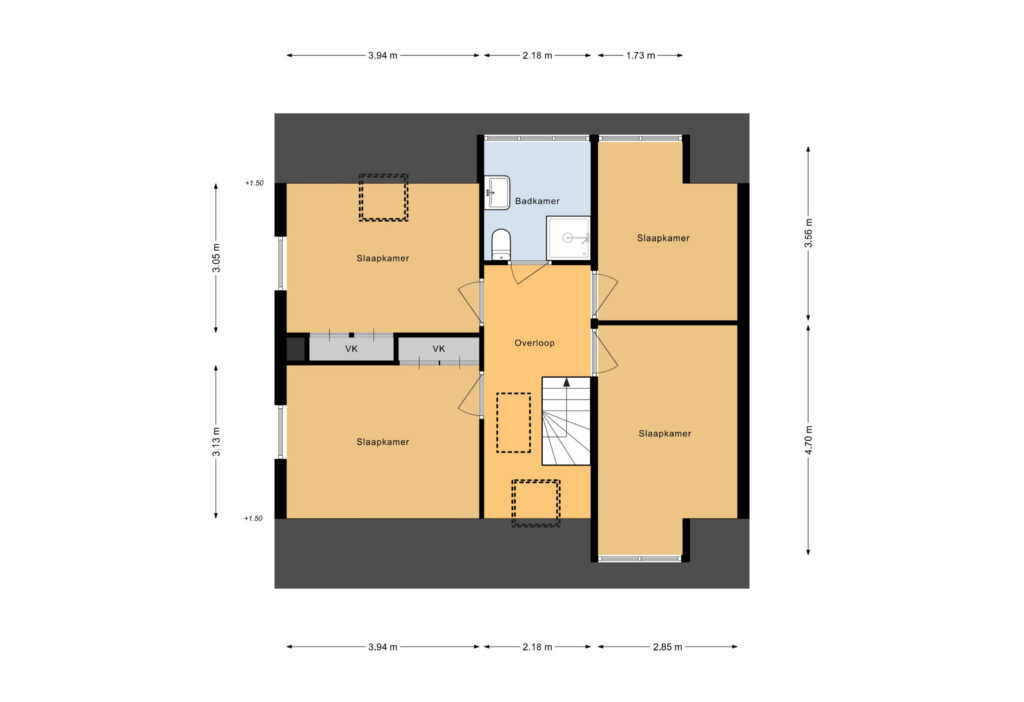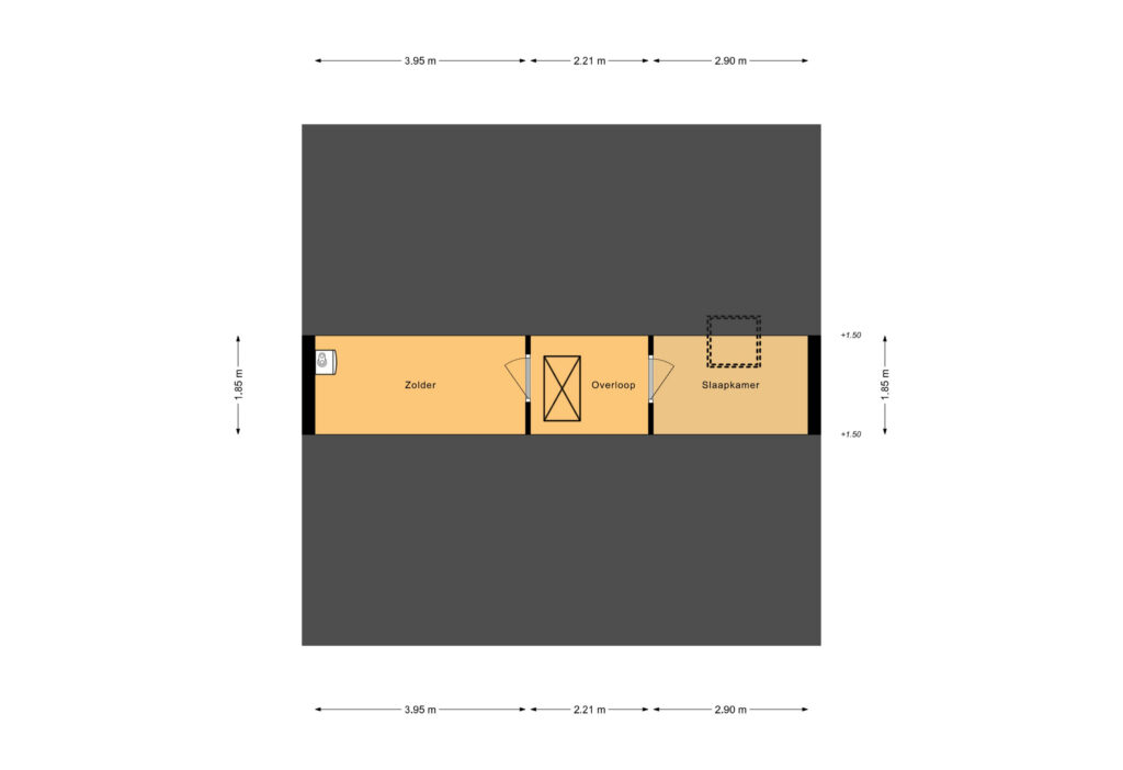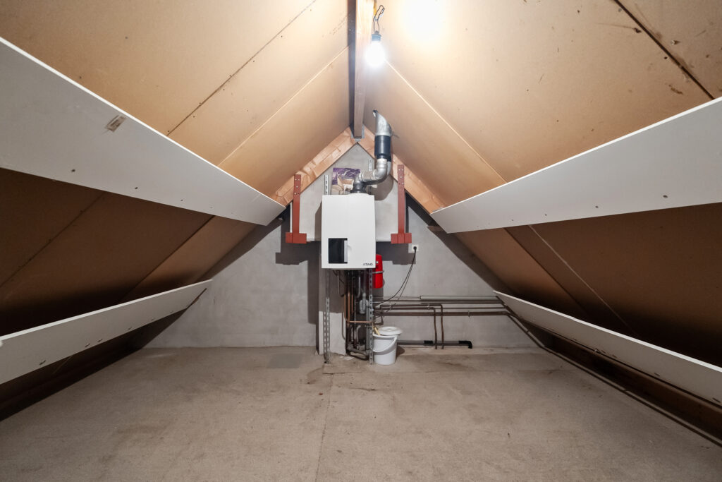 Via een vlizotrap bereikt u de ruime, volledig beloopbare zolderverdieping met extra kamer, overloop en aparte ruimte met de cv-installatie (ATAG HR, 2011). Met het plaatsen van een vaste trap is hier eenvoudig extra woonruimte te creëren.