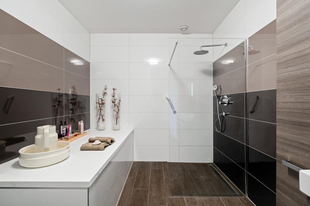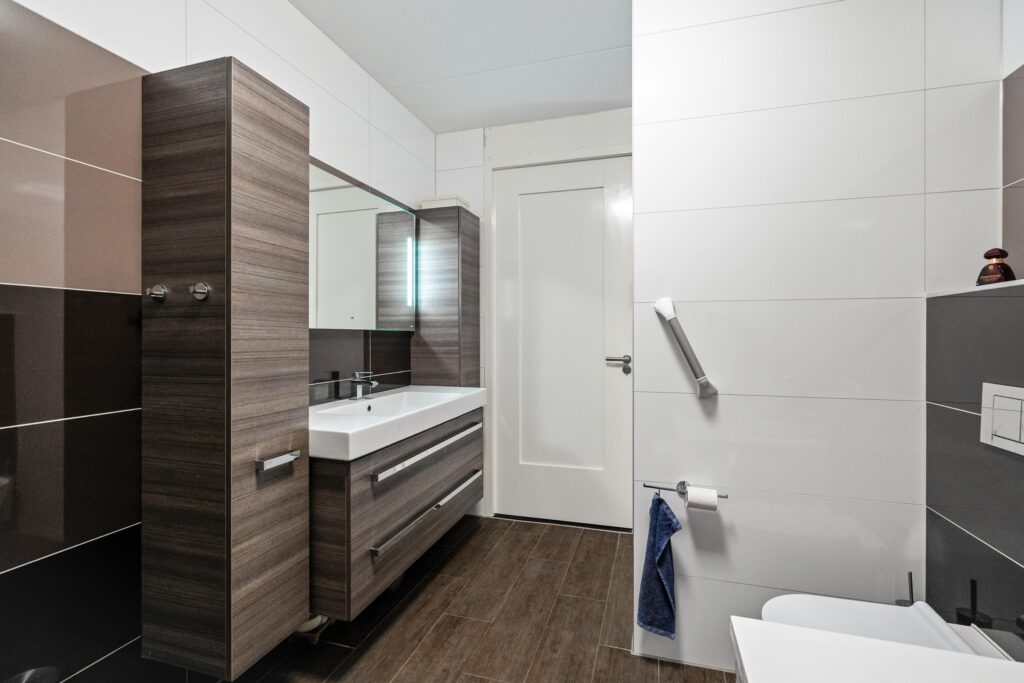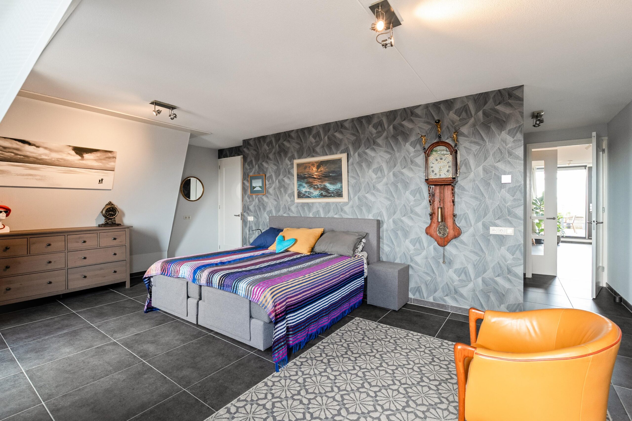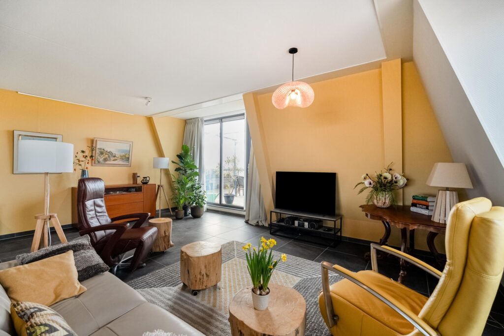 Het appartement beschikt over twee ruime slaapkamers. De master bedroom is bijzonder royaal en voorzien van een Frans balkon. De tweede slaapkamer biedt eveneens toegang tot het dakterras en is multifunctioneel in te richten, bijvoorbeeld als werk- of hobbyruimte. De badkamer is luxe uitgevoerd en voorzien van een inloopregendouche, een wastafel met meubel en een toilet. Daarnaast is er een separaat toilet aanwezig. Het geheel is afgewerkt met een hoogwaardige tegelvloer met vloerverwarming, wat zorgt voor extra comfort en een moderne uitstraling.