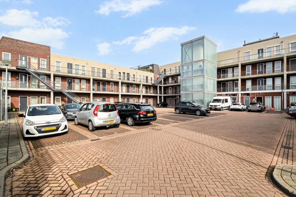 De woning beschikt over twee eigen parkeerplaatsen op het afgesloten binnenterrein en een privéberging met elektriciteit.