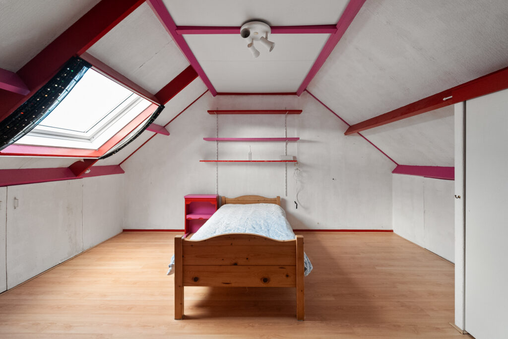 Door de vaste trap komt u op de tweede verdieping waar zich de cv-opstelling bevindt én ruimte voor een extra witgoedaansluiting. De vierde slaapkamer is ruim van formaat, beschikt over een dakraam en slimme bergruimte achter de knieschotten.