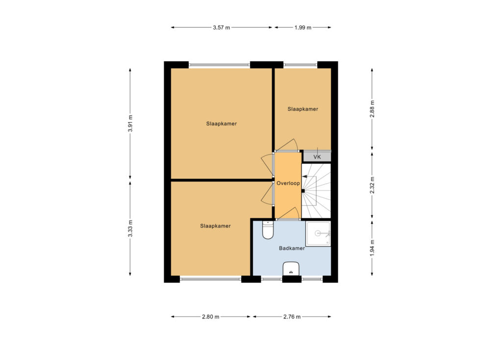 Via de overloop bereikt u drie ruime slaapkamers en de vernieuwde badkamer (2017). De badkamer is voorzien van een inloop douche, wastafel, vloerwarming, toilet en radiator. De slaapkamers zijn royaal van formaat en bieden volop mogelijkheden.
