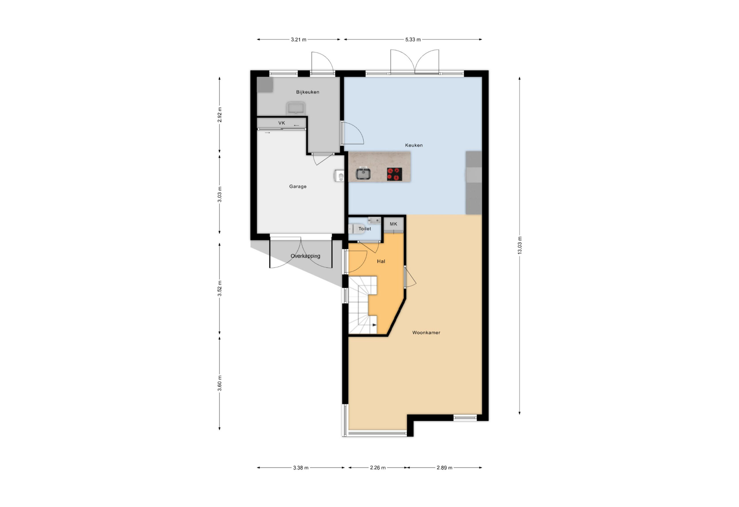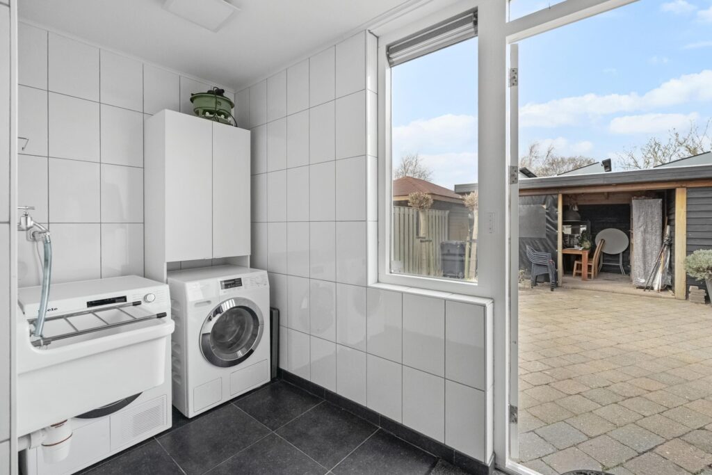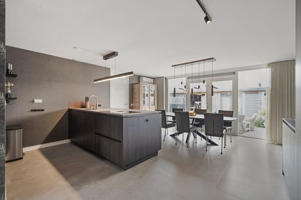 Via de entree aan de voorzijde komt u in de hal met meterkast, modern toilet (2022) en trapopgang. De ruime en lichte woonkamer aan de voorzijde is voorzien van grote raampartijen en vloerverwarming. Aan de achterzijde bevindt zich de uitgebouwde keuken (2025) met kookeiland, uitgevoerd in een moderne stijl en voorzien van diverse inbouwapparatuur en veel werk- en bergruimte. De openslaande deuren, met extra warmte-werende glas, zorgen voor een directe verbinding met de tuin. Aansluitend vindt u de praktische bijkeuken met witgoedaansluitingen en extra bergruimte, met toegang tot de berging.