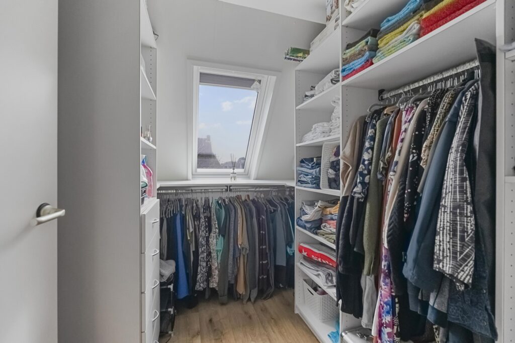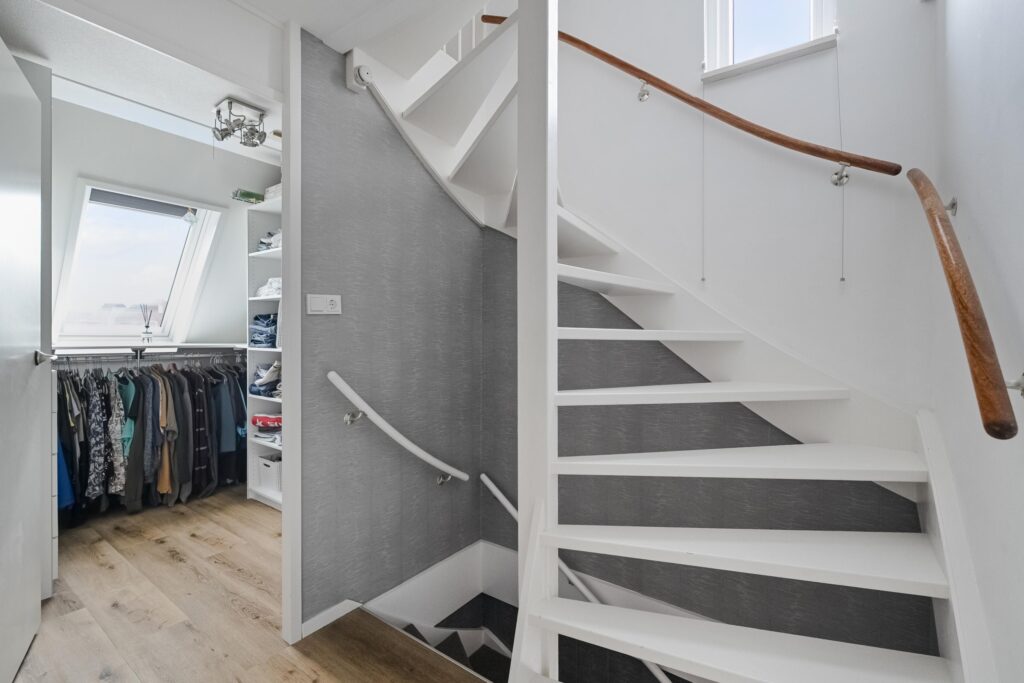Via een vaste trap bereikt u de tweede verdieping met overloop, technische installaties (waaronder de elektrische boiler 80l) en extra bergruimte. Hier bevindt zich tevens een ruime vierde slaapkamer, geschikt als slaap-, werk- of hobbyruimte.