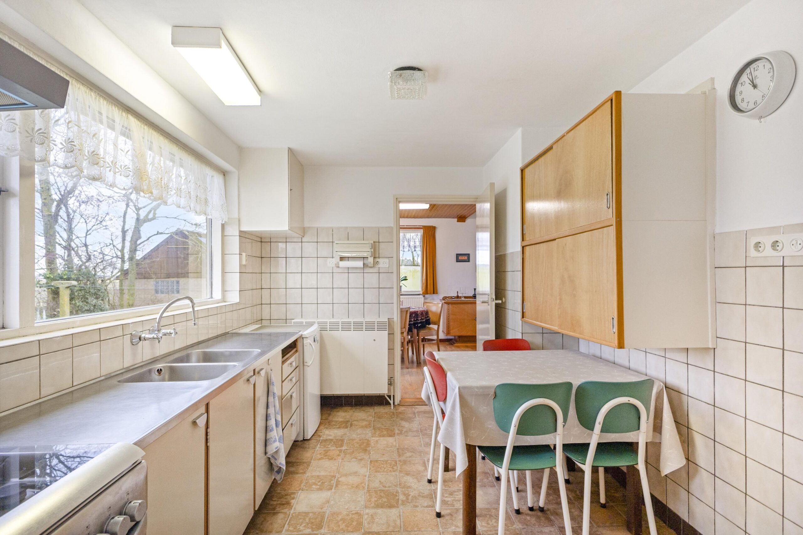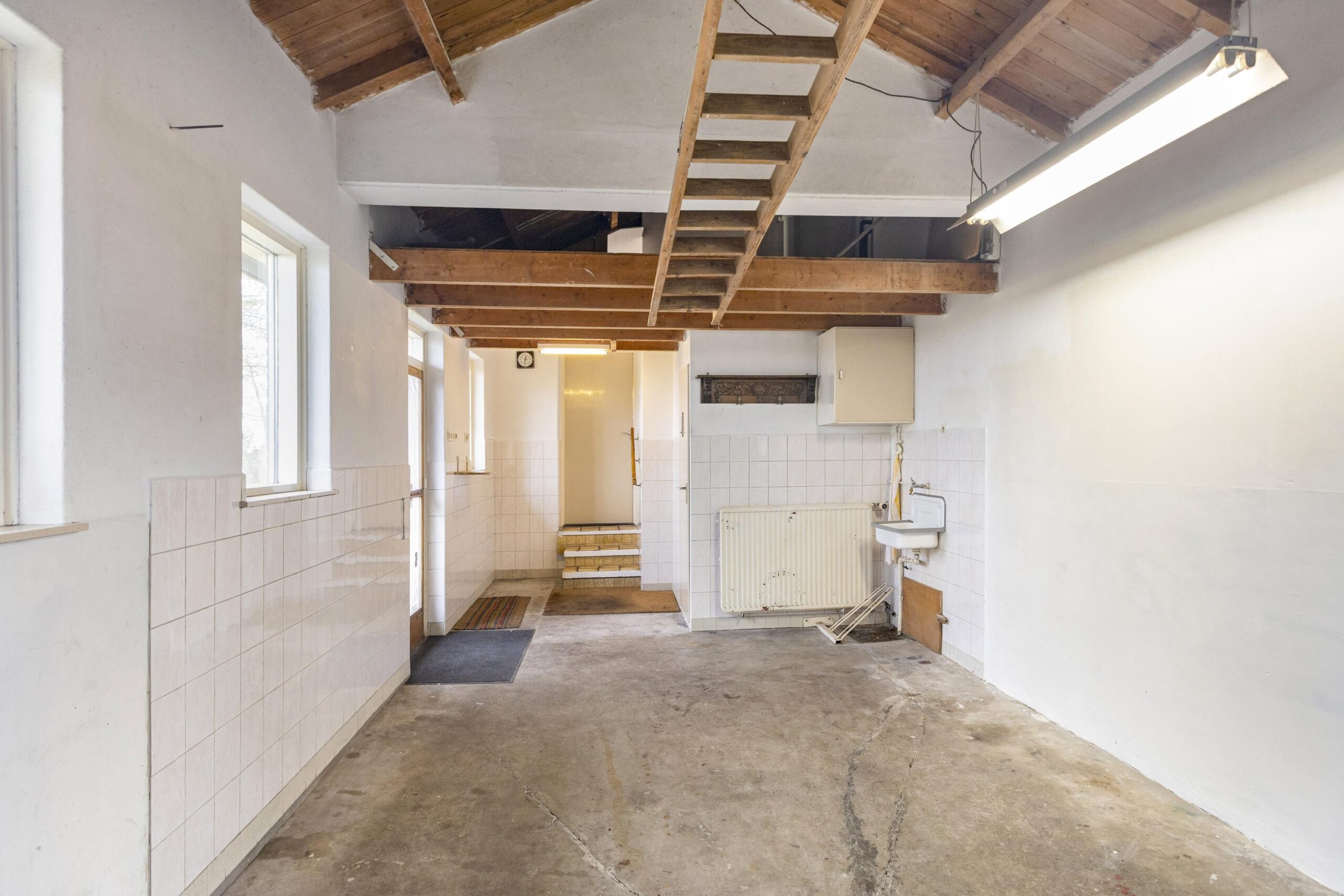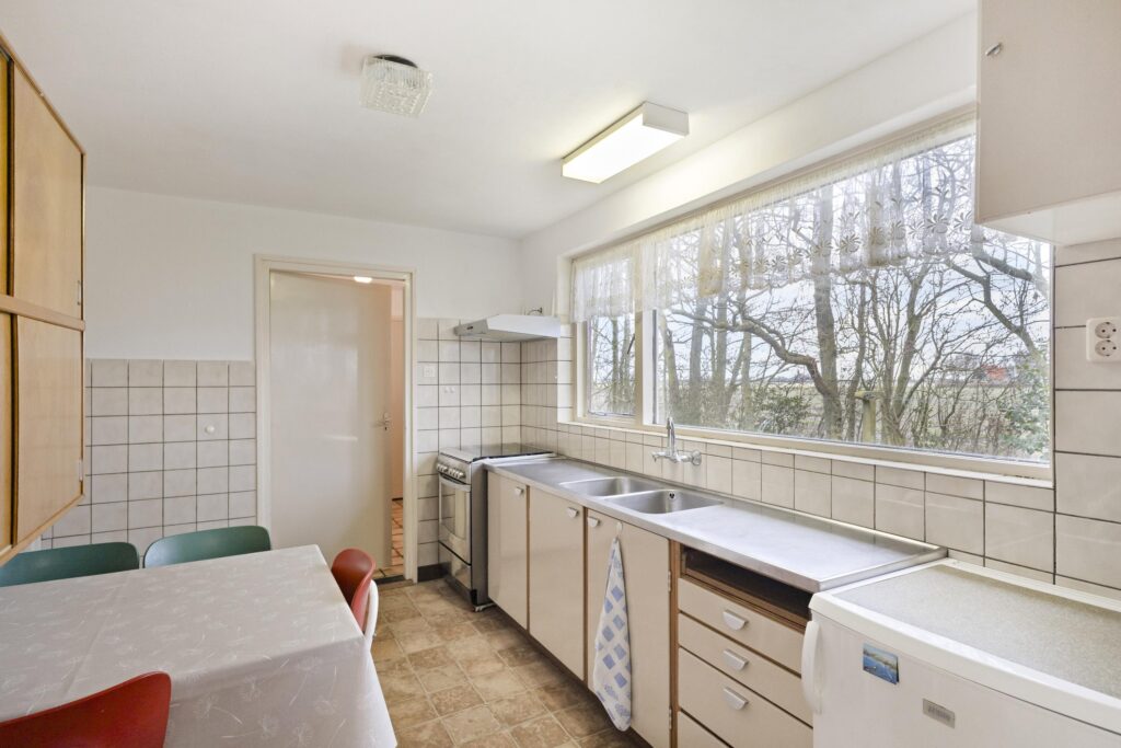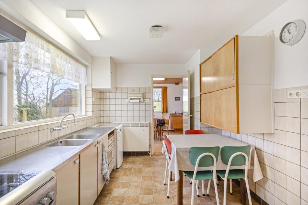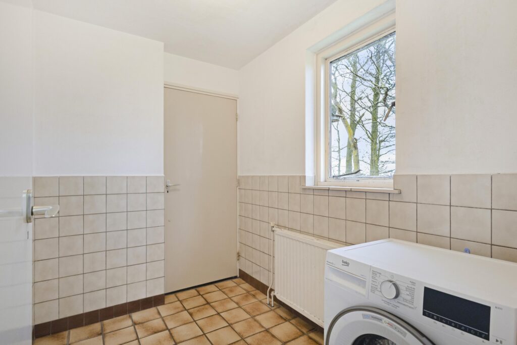 Royale woonkamer, dichte keuken met eenvoudig keukenblok. Grote bijkeuken met twee vaste kasten en een opstelplaats voor een wasmachine/droger. Ruime inpandige garage met zolder erboven. Technische ruimte met de opstelplaats van de c.v. (Atag HR ketel uit 2024).