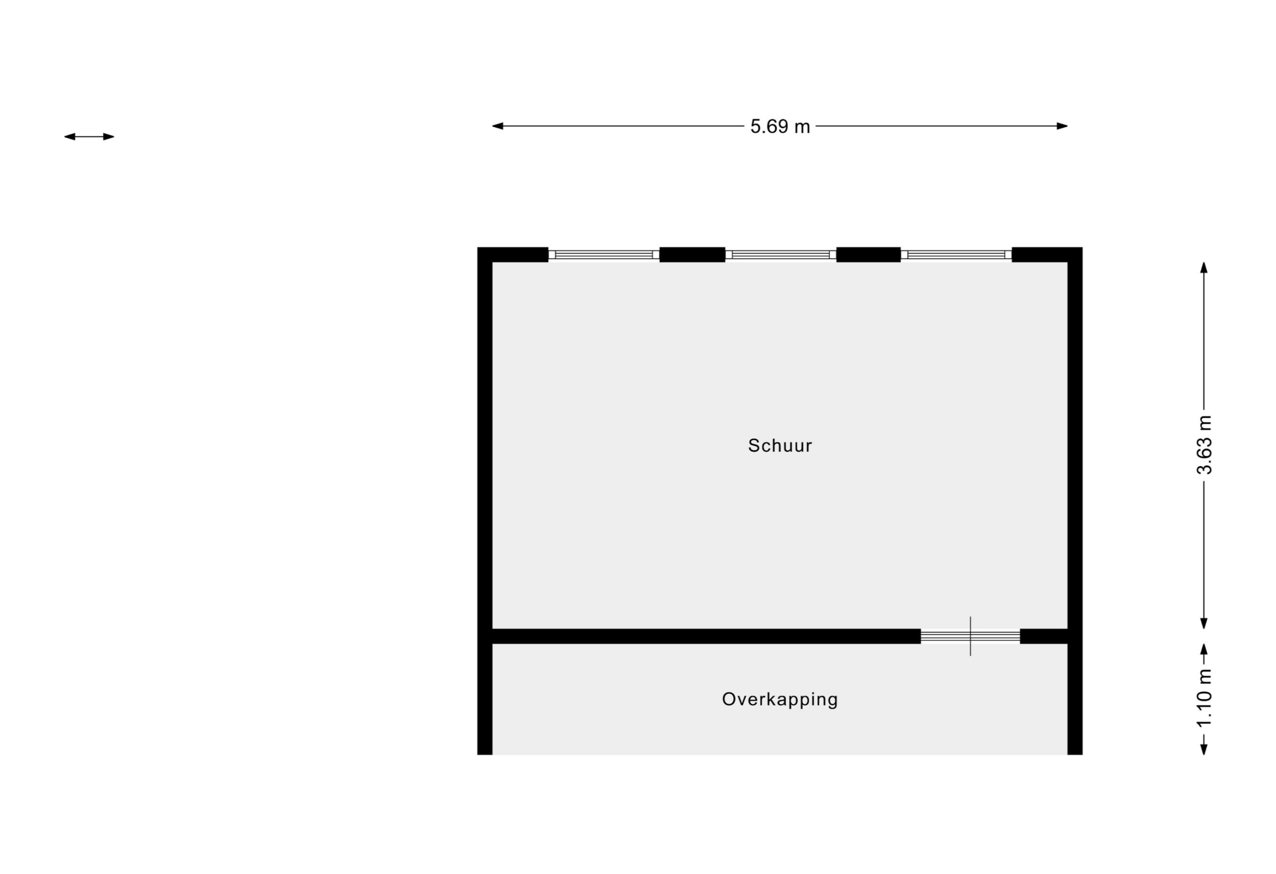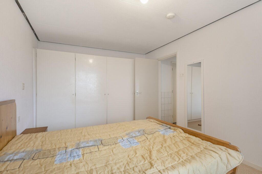Entree aan de voorzijde van de woning in een ruime hal met de meterkast. Toiletruimte met een toilet en een fonteintje. Badkamer met een douche en wastafel. Een grote hoofdslaapkamer een een kleinere tweede slaapkamer.