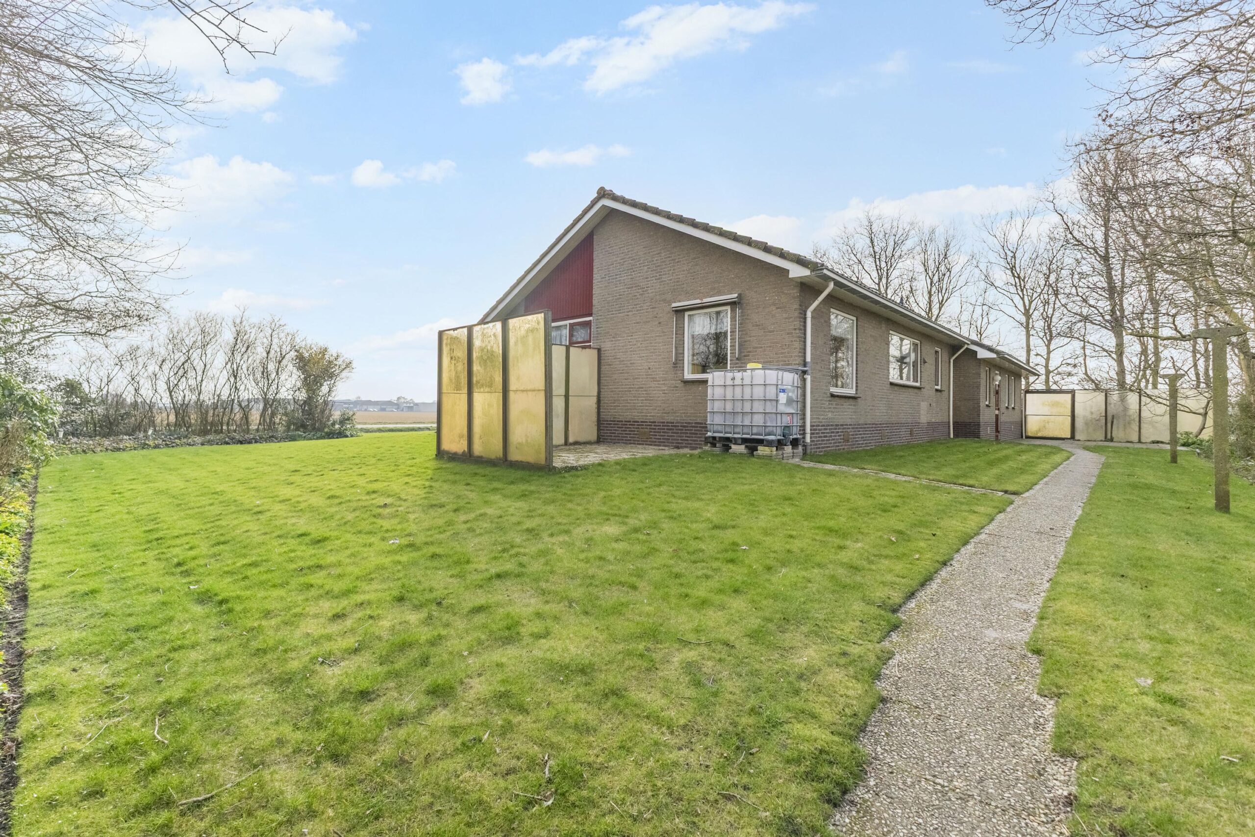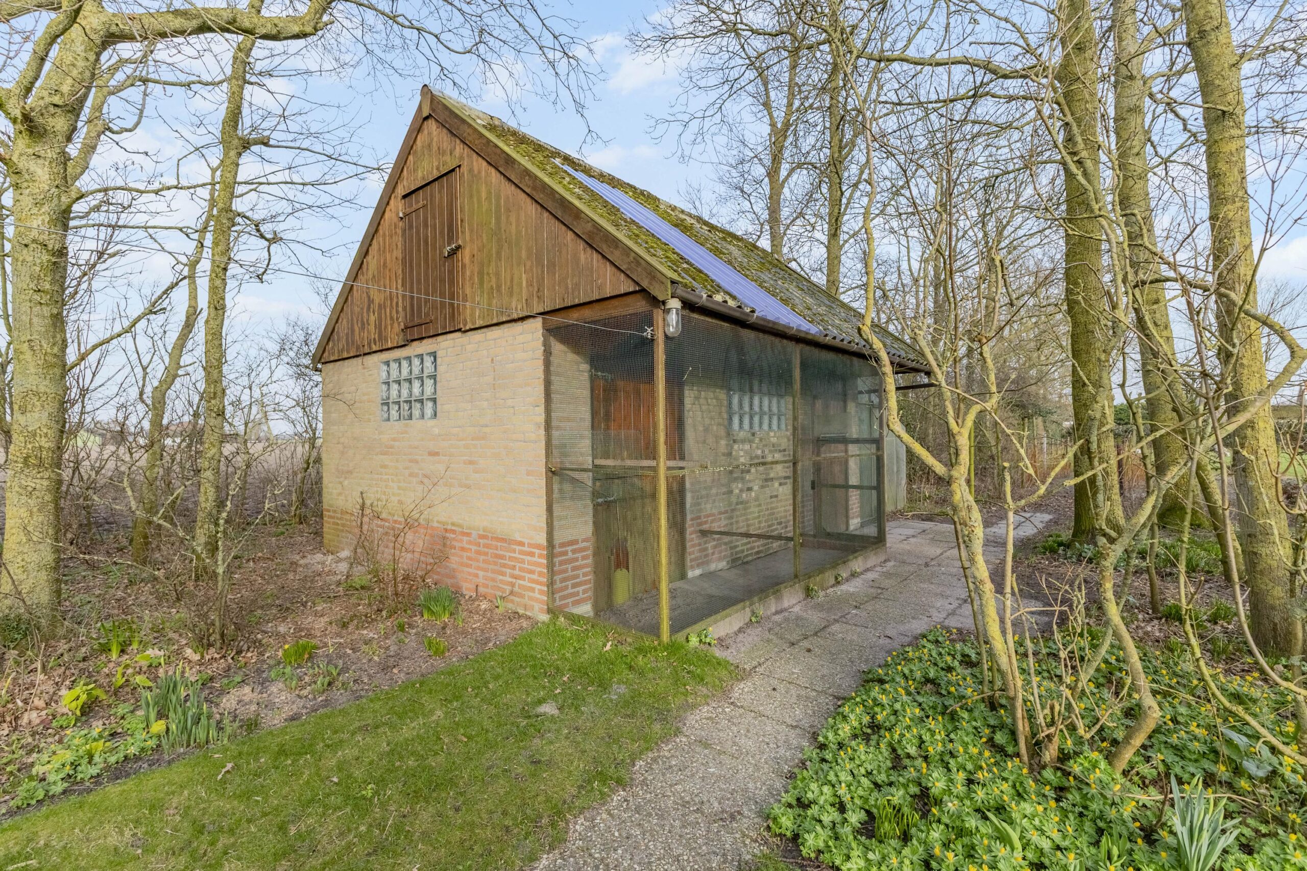 Rondom de woning ligt een royale tuin die prachtig is aangelegd met o.a. fruitbomen, u wijds uitzicht biedt over de landerijen en helemaal klaar is voor het seizoen. U kunt genieten van rust, de ruimte en de privacy in het buitengebied. U heeft tevens de beschikking over een extra berging van circa 20 m², welke voorheen gebruikt werd als paardenbox en tot voorkort als kippenhok. Enkele jaren geleden (december 2023) zijn de gevels opnieuw gevoegd en geïmpregneerd, wat een goede basis vormt voor verdere modernisering.