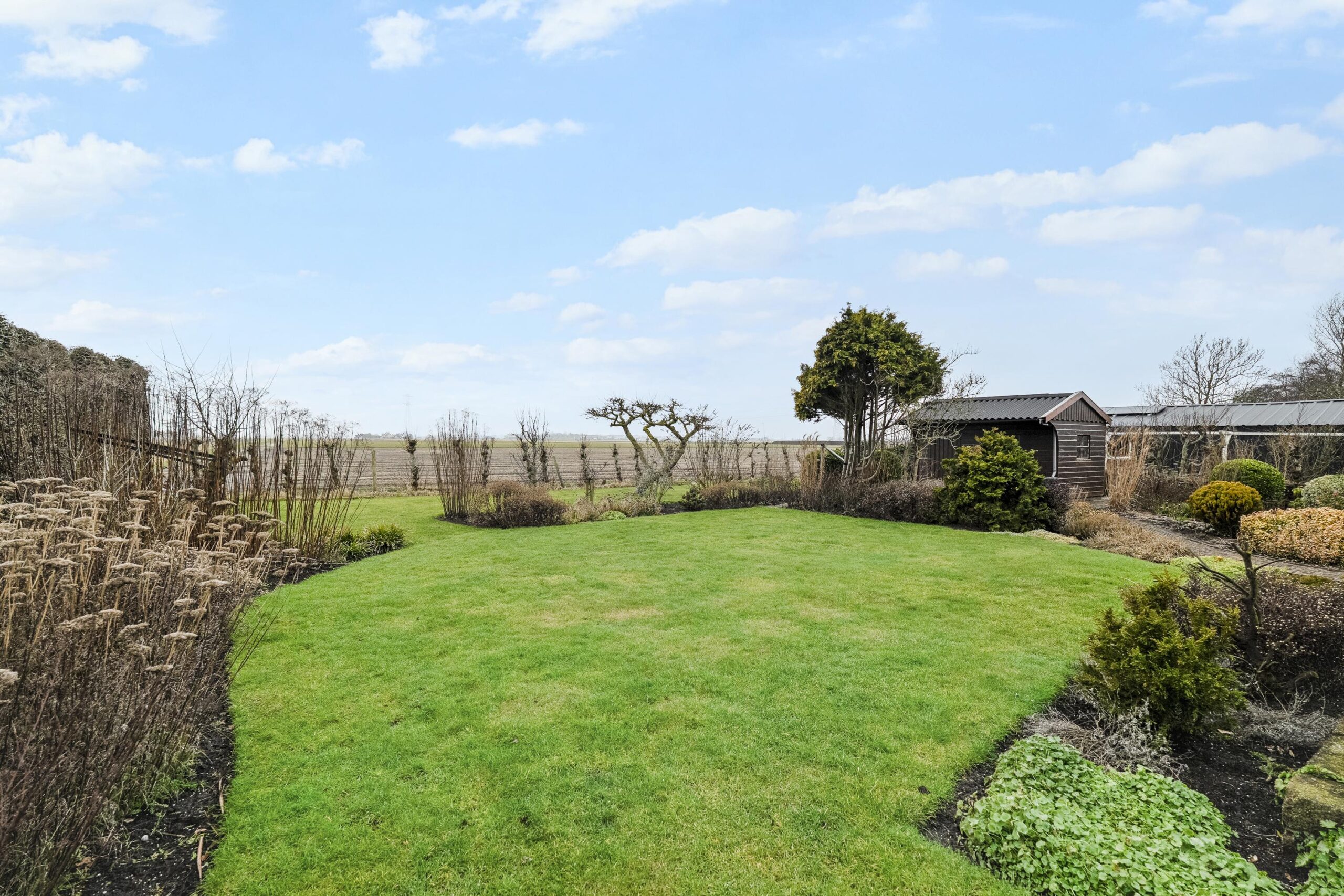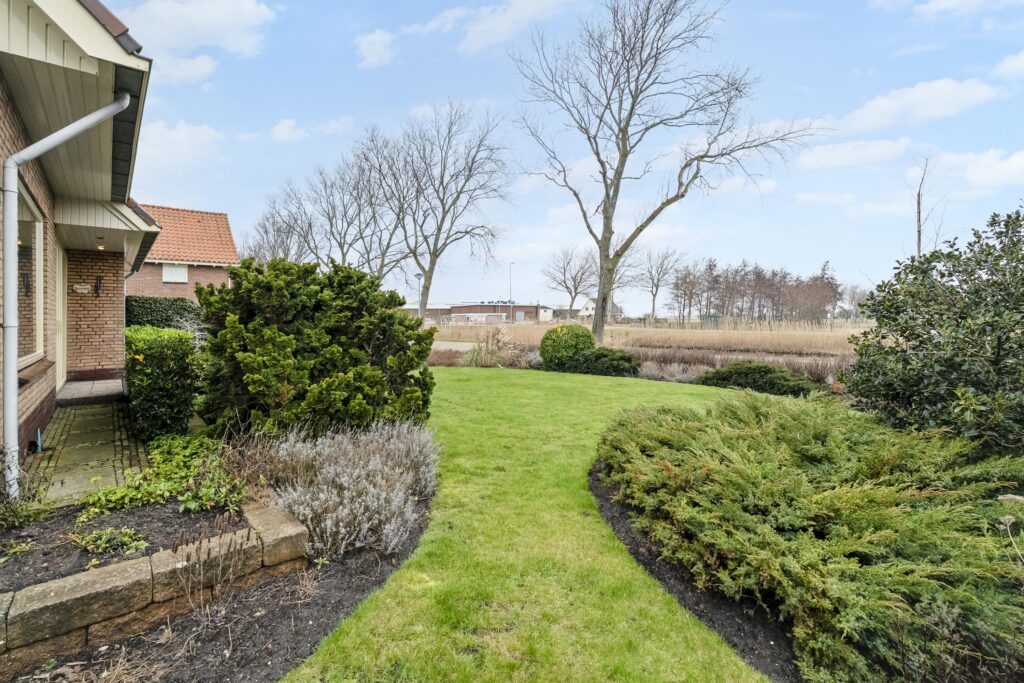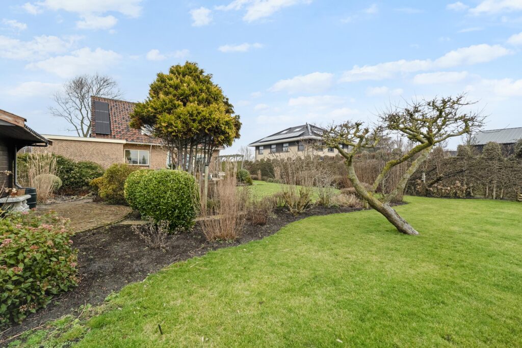De tuin rondom de woning is fraai aangelegd en uitstekend onderhouden. Aan de voorzijde vindt u een verzorgde tuin met oprit en parkeergelegenheid voor meerdere auto’s op eigen terrein. De achtertuin is netjes aangelegd, op het zuiden gesitueerd en biedt een prachtig, vrij uitzicht over de uitgestrekte bollenvelden. Hier geniet u in alle rust van het landelijke buitenleven. Achterin de tuin staat een houten berging, ideaal voor het opbergen van tuingereedschap en fietsen.