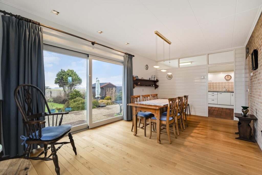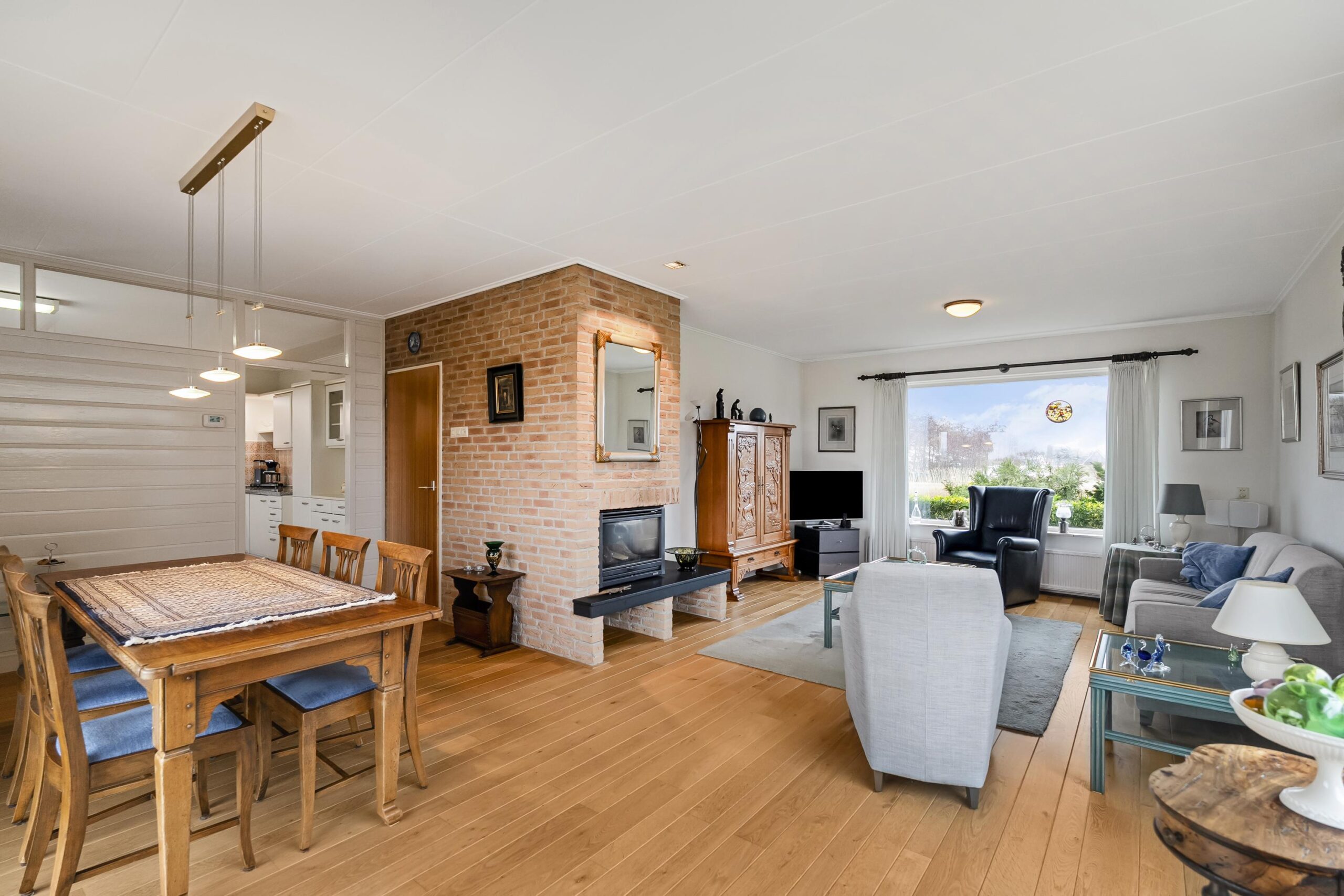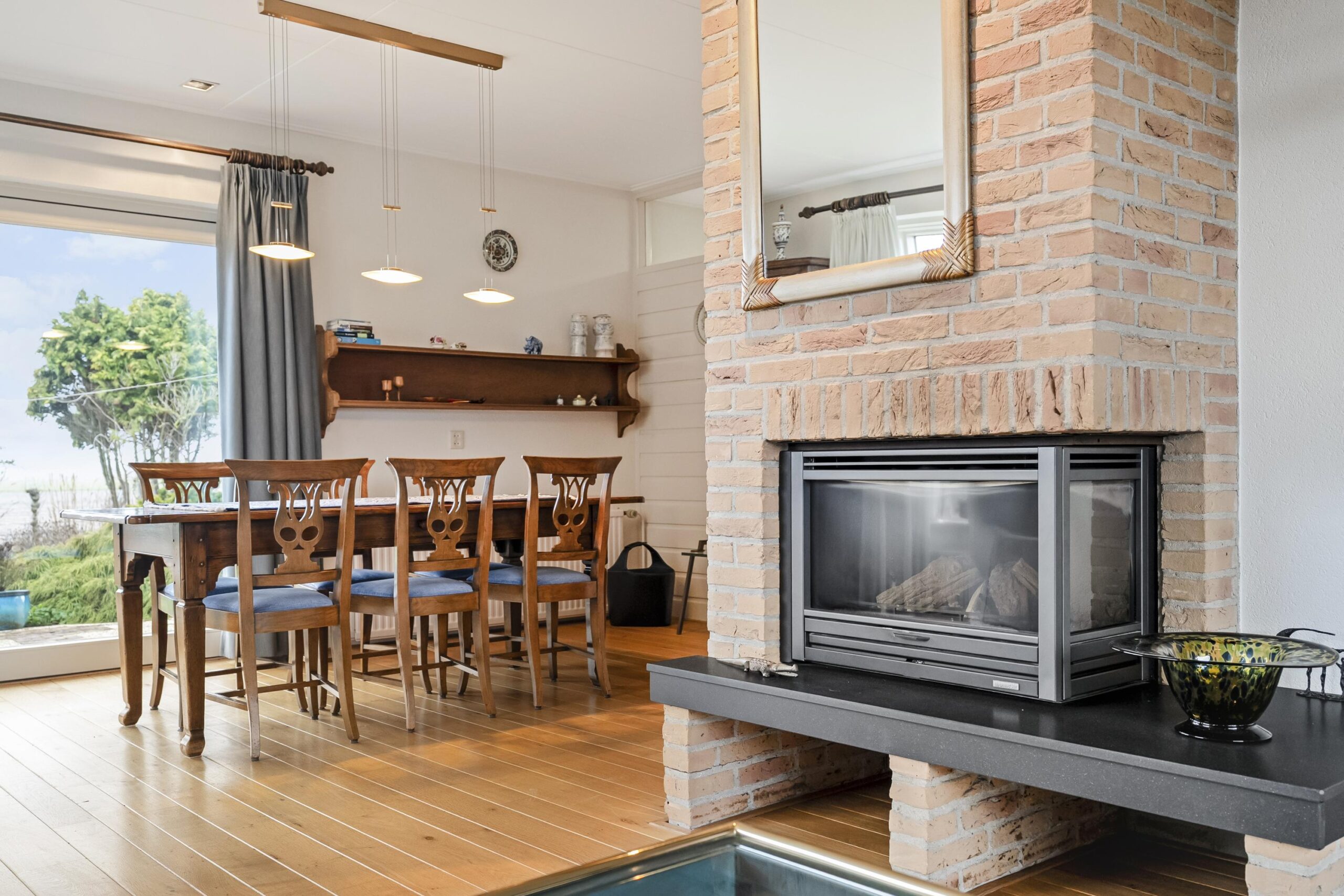 De royale woonkamer is heerlijk licht dankzij de grote raampartijen. De ruimte is afgewerkt met een parketvloer en wordt verwarmd middels radiatoren en een sfeervolle gashaard. Via de schuifpui loopt u zo de achtertuin in, waar u geniet van een fantastisch vrij uitzicht over de bollenvelden. Een groot zonnescherm zorgt voor aangename schaduw op zonnige dagen.