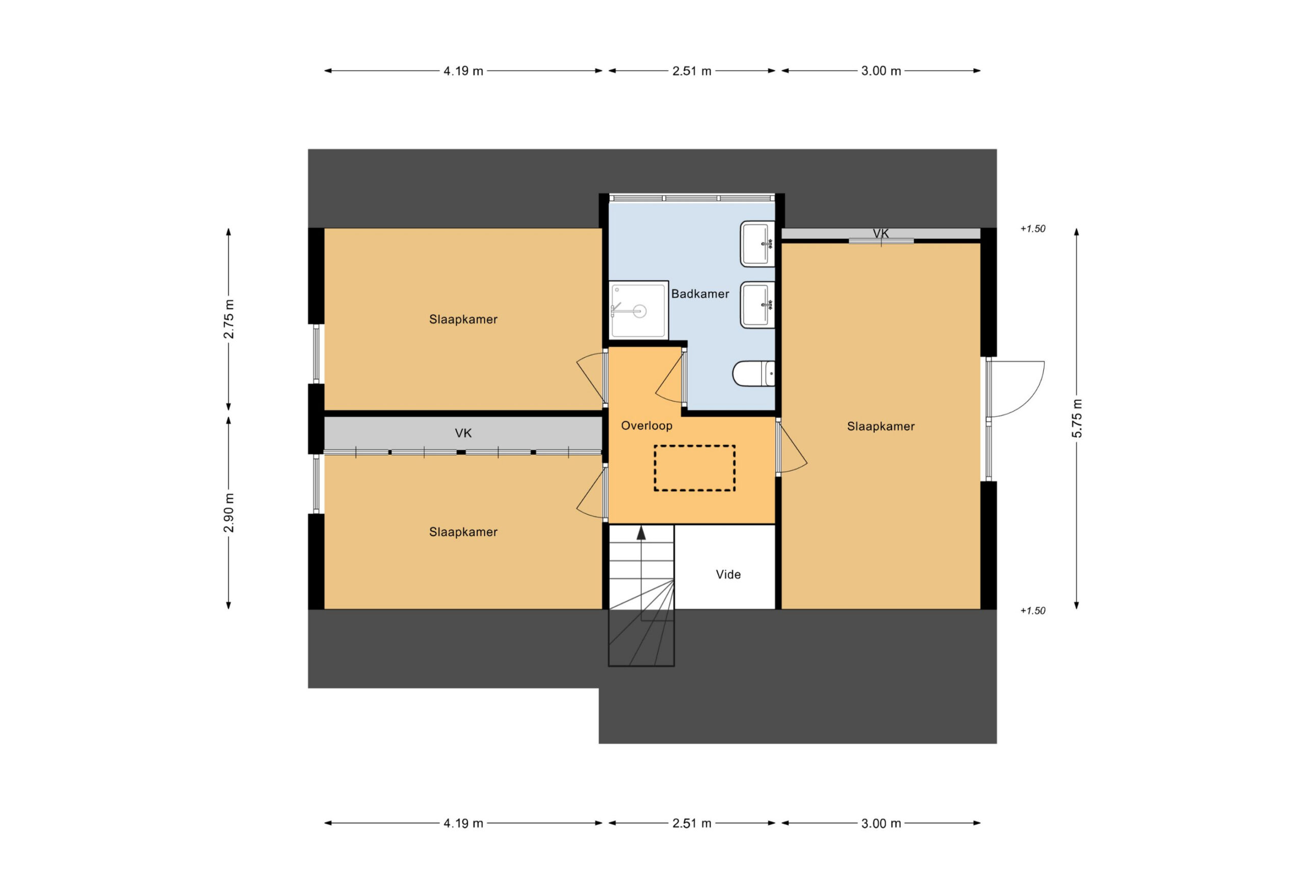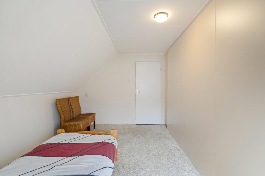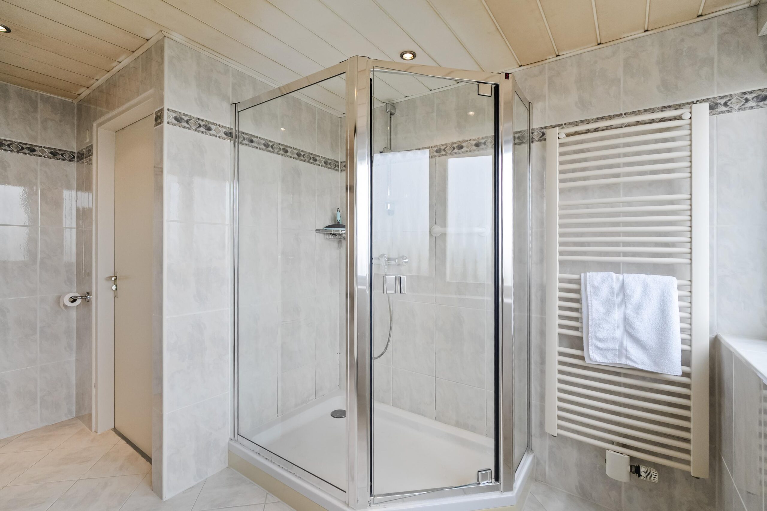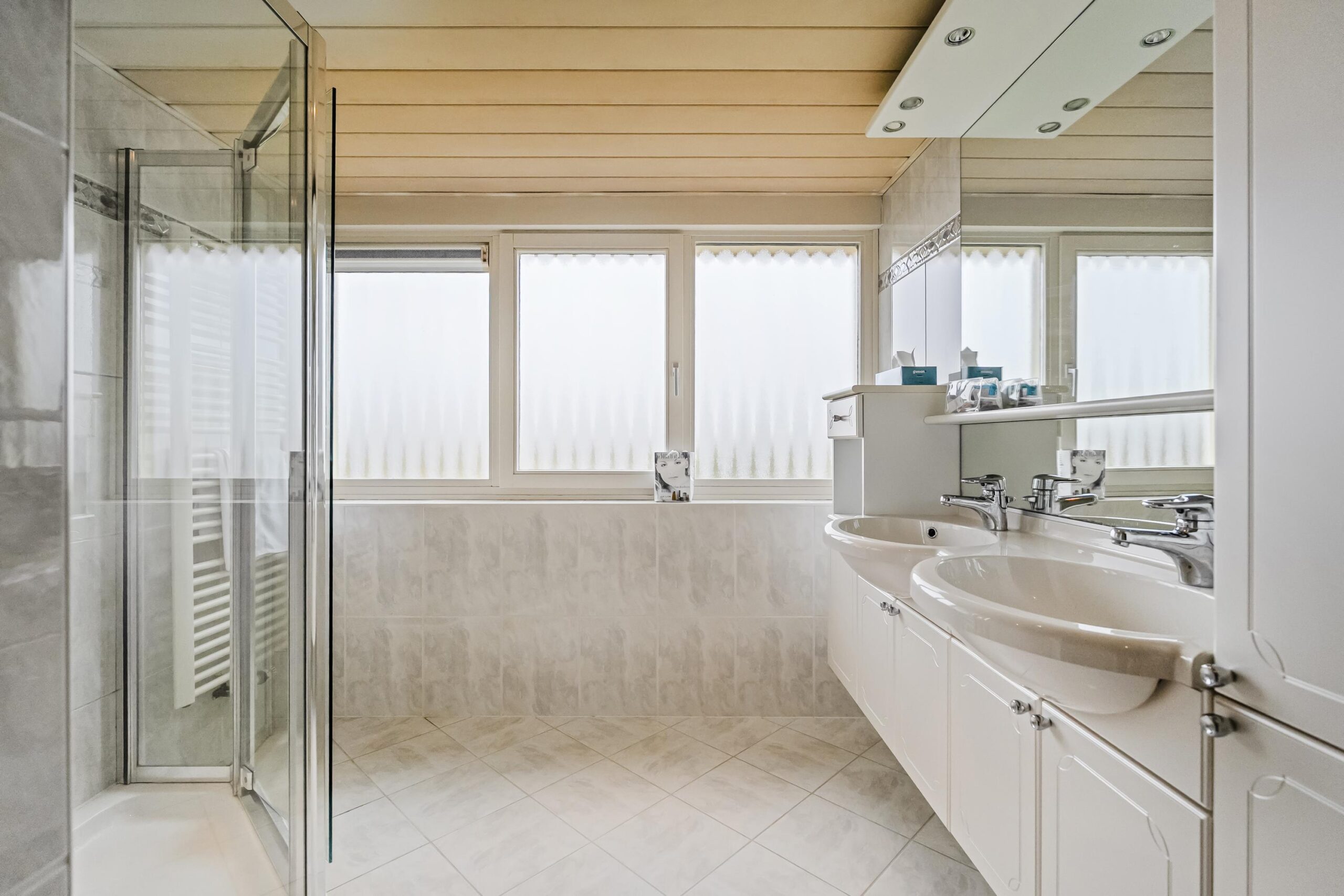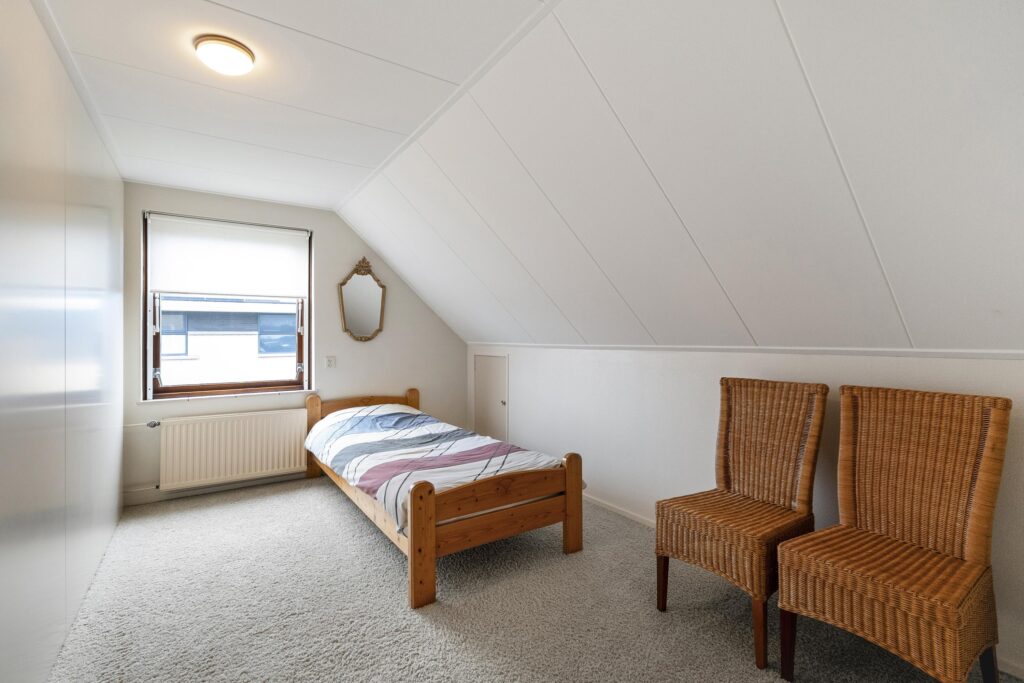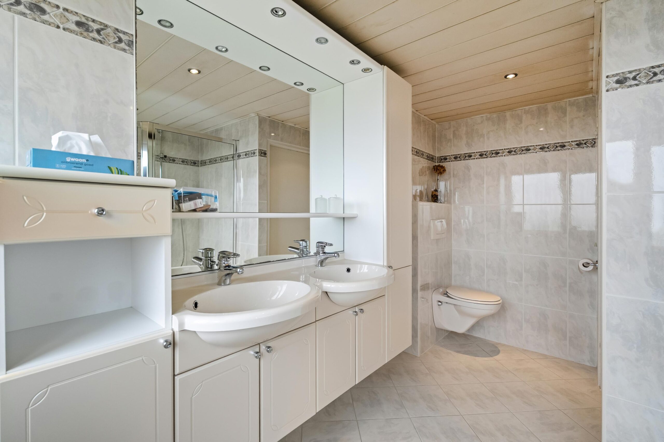 Op de eerste verdieping bevinden zich een ruime overloop, drie prima slaapkamers en de badkamer. De badkamer is compleet ingericht met een dubbele wastafel, hangend closet, designradiator en een douchecabine. Er zijn twee middelgrote slaapkamers en één ruime hoofdslaapkamer. Eén van de slaapkamers beschikt over een grote vaste kastenwand. Via een vlizotrap op de overloop is de zolder bereikbaar, waar u volop bergruimte heeft voor het opbergen van uw spullen.