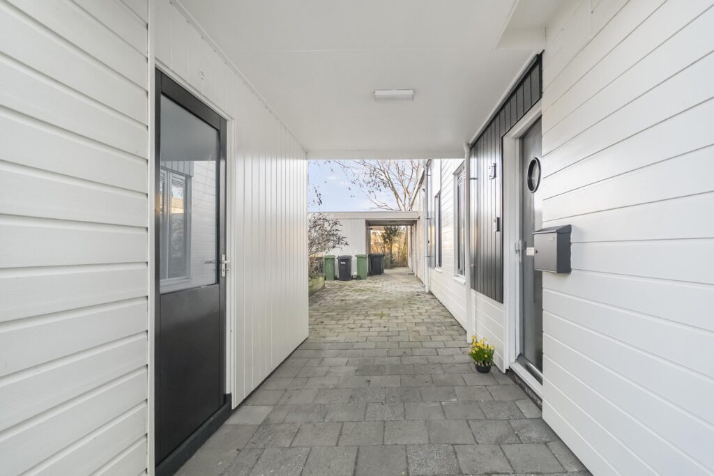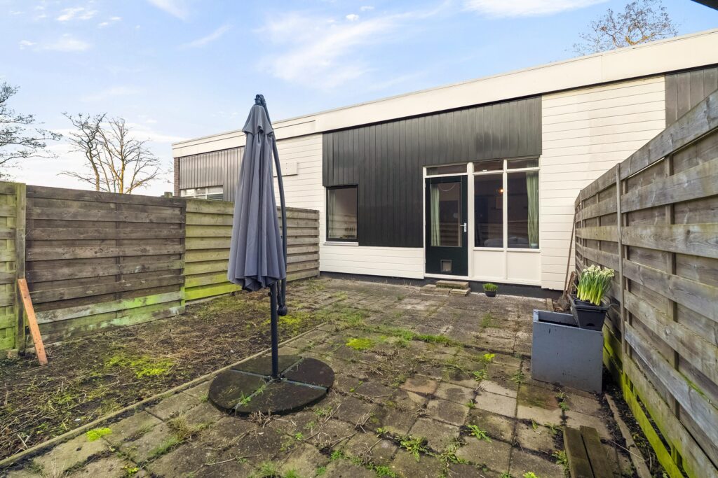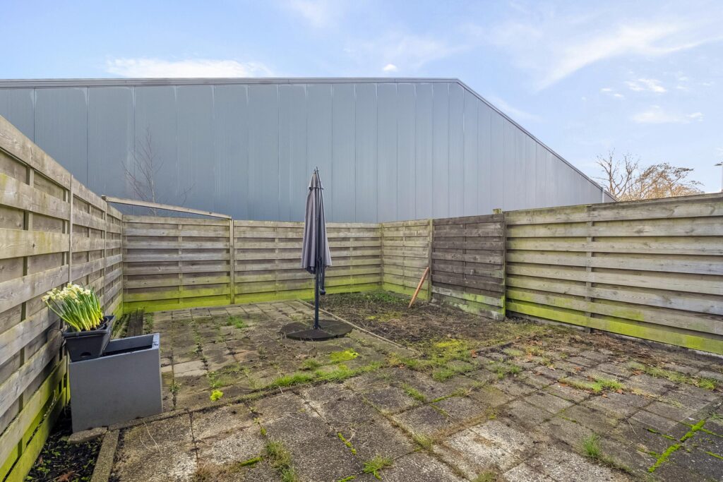 De tuin is gunstig gelegen op het zuidoosten, ideaal om van de zon te genieten. Aan de voorzijde van de woning bevindt zich een separate berging, perfect voor het stallen van fietsen en extra opslag.