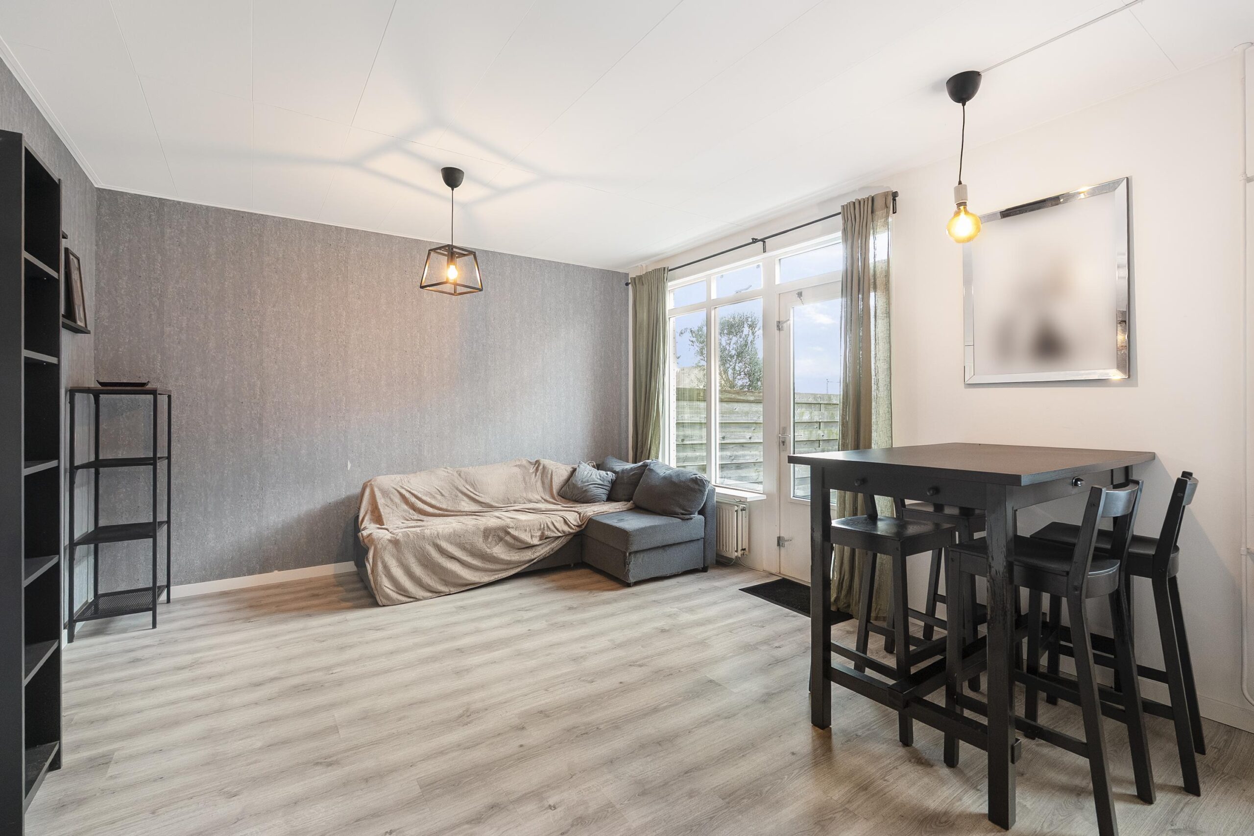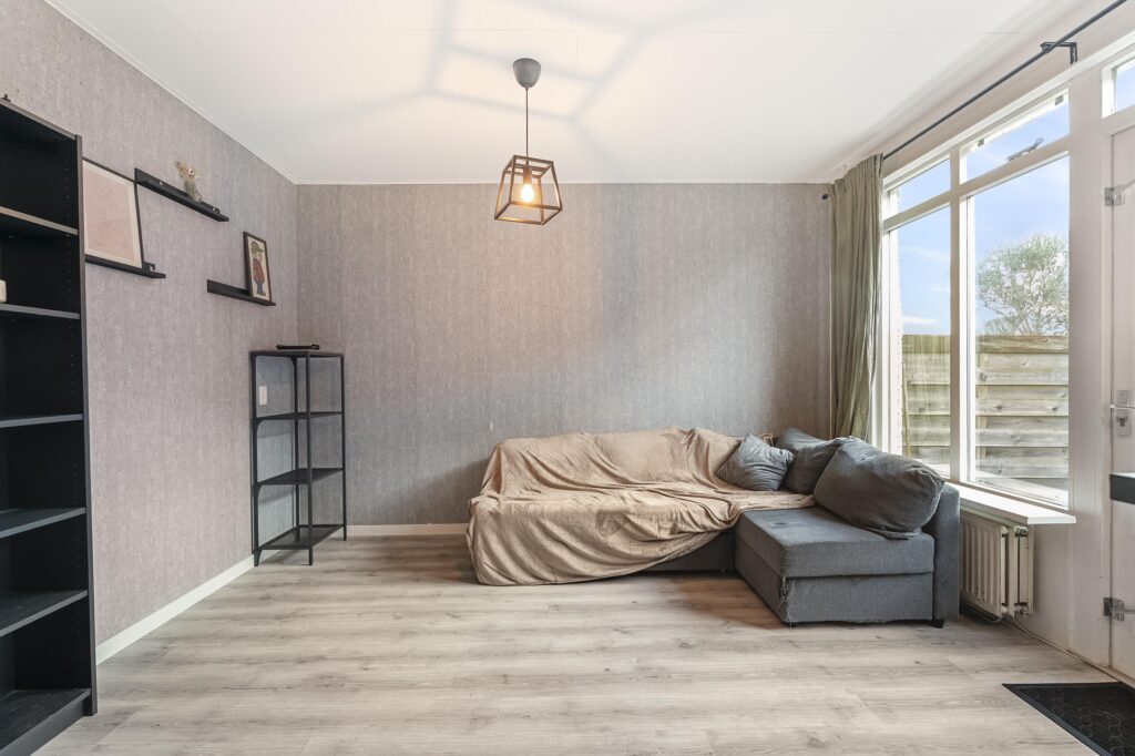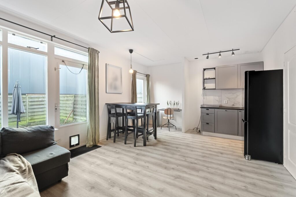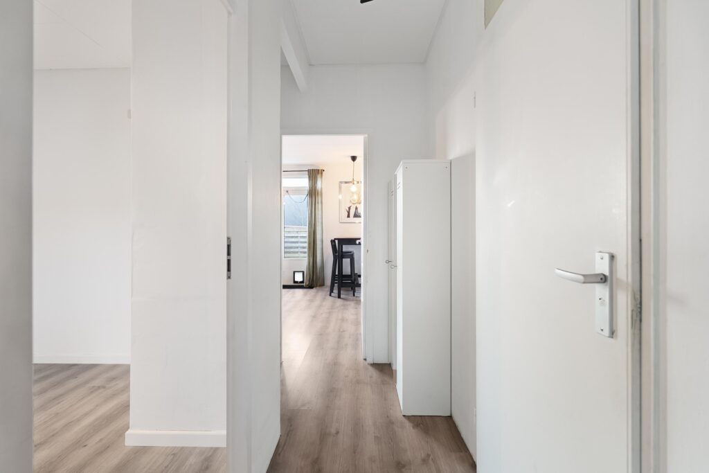 Via de entree bereikt u de hal met toegang tot de slaapkamer, badkamer en de woonkamer met open keuken. De slaapkamer is afgewerkt met behangen wanden en een laminaatvloer. De moderne badkamer (2021) beschikt over een inloopdouche, wastafel, hangend toilet, designradiator, witgoedaansluiting en de cv-opstelling. De woonkamer is eveneens voorzien van een laminaatvloer, behangen wanden en radiatoren en staat in open verbinding met de keuken.