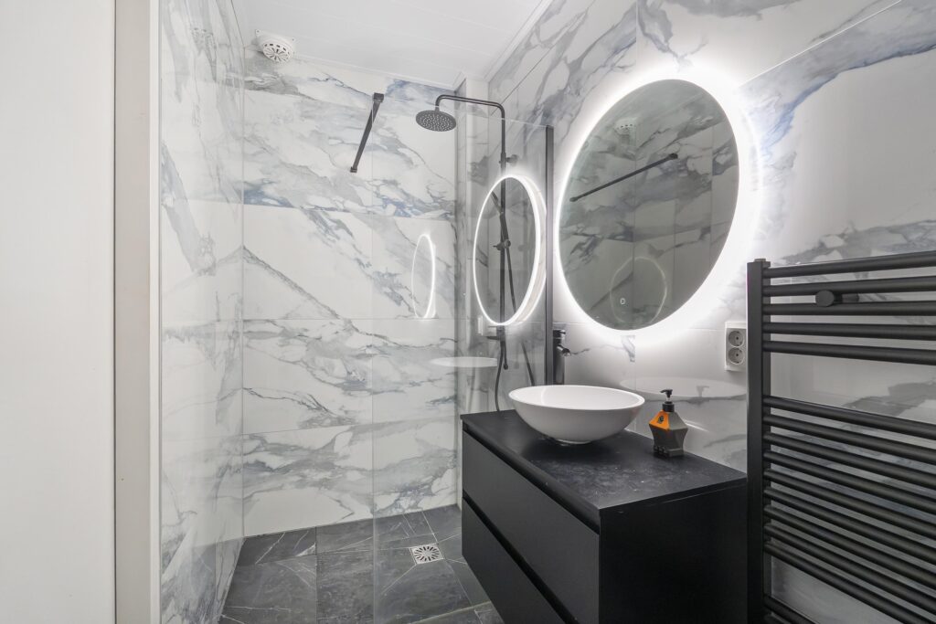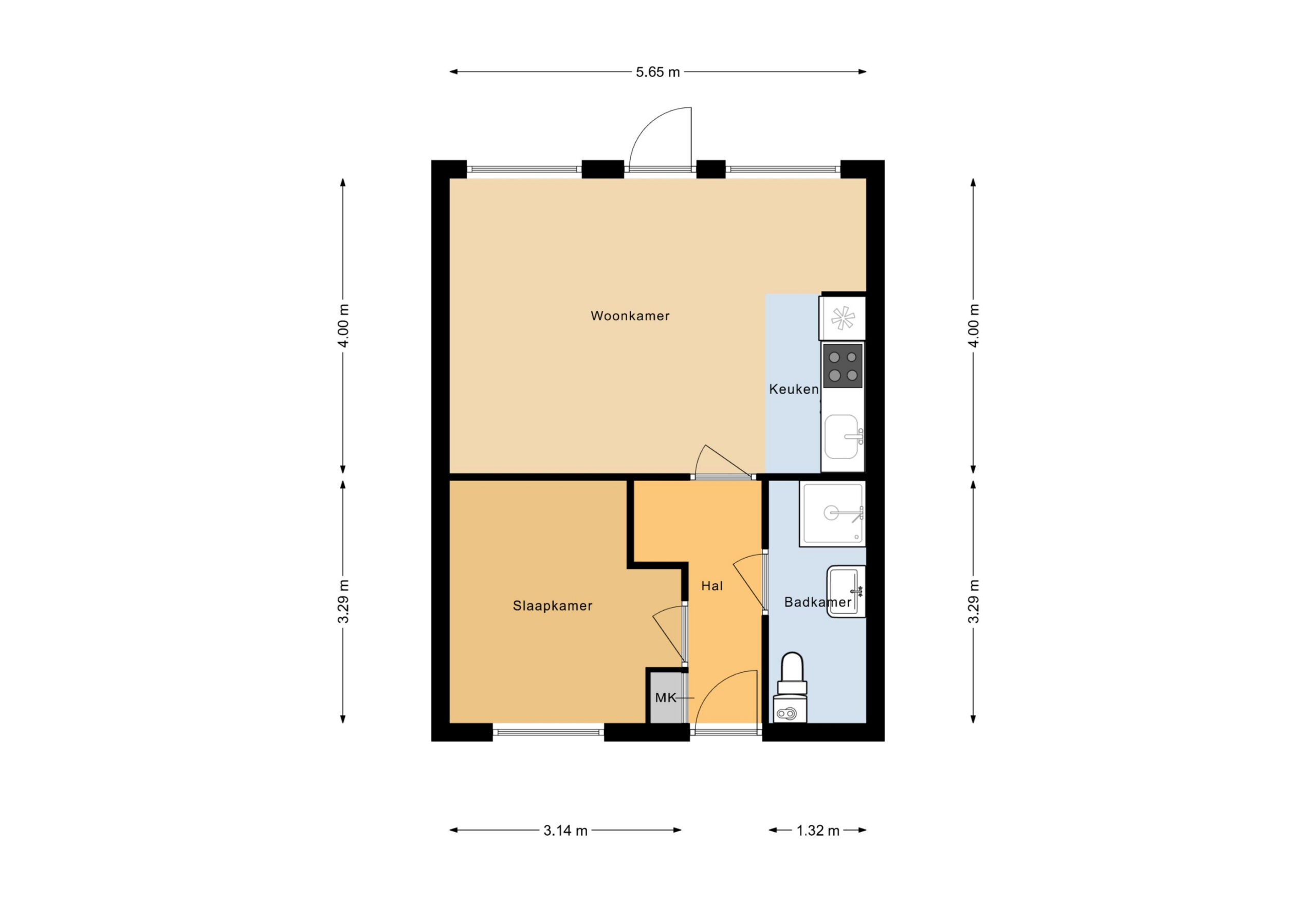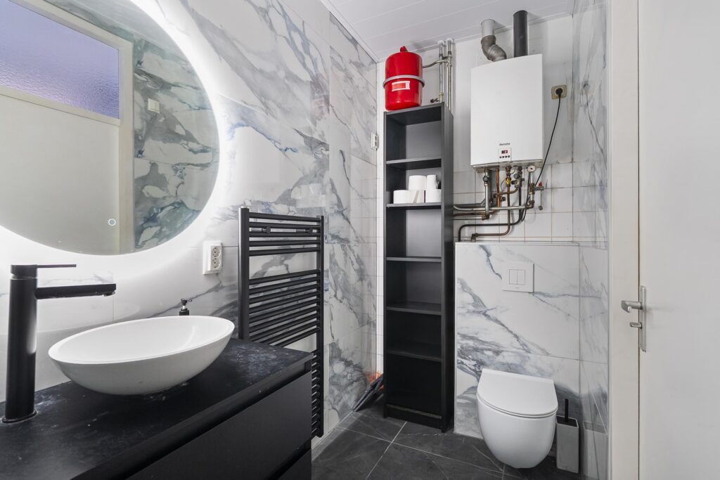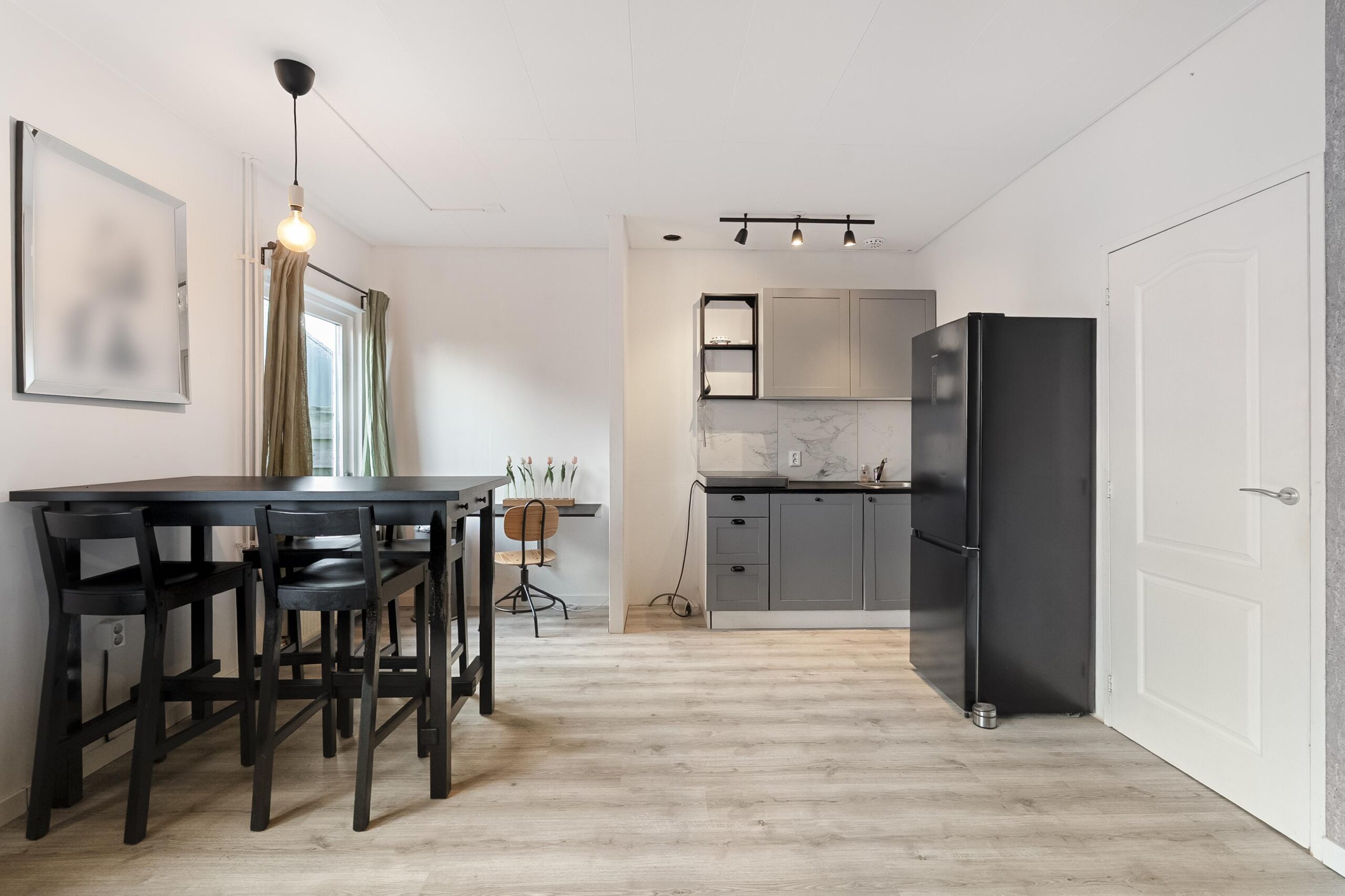 Via de entree bereikt u de hal met toegang tot de slaapkamer, badkamer en de woonkamer met open keuken. De slaapkamer is afgewerkt met behangen wanden en een laminaatvloer. De moderne badkamer (2021) beschikt over een inloopdouche, wastafel, hangend toilet, designradiator, witgoedaansluiting en de cv-opstelling. De woonkamer is eveneens voorzien van een laminaatvloer, behangen wanden en radiatoren en staat in open verbinding met de keuken.