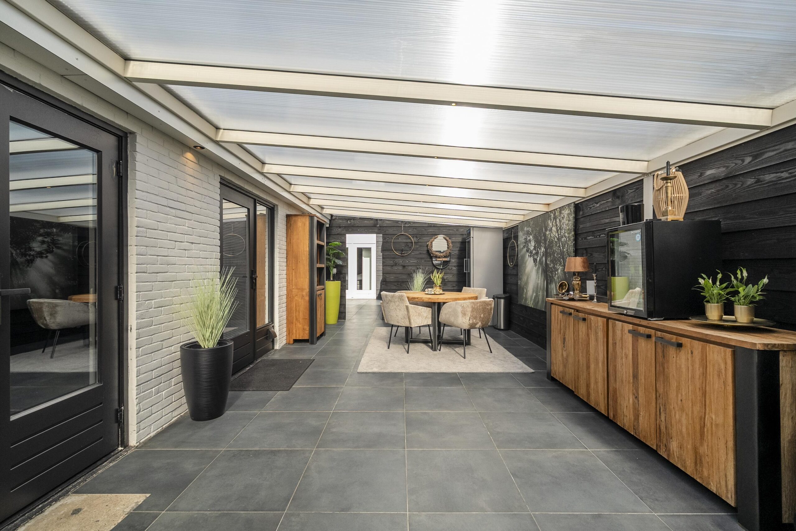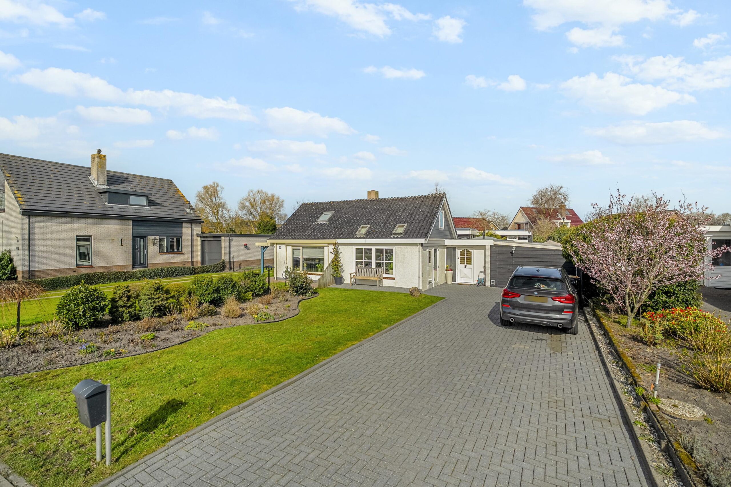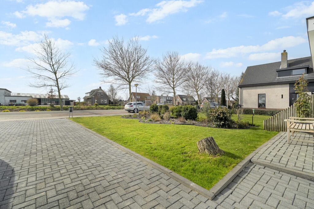 De woning heeft een grote voortuin met diverse vaste beplanting en een riant en strak gazon. De lange oprit heeft plek voor meerdere auto's. Achter is een fijne patiotuin tussen de serre en de aanbouw met lekker veel privacy en ook zeer onderhoudsvriendelijk aangelegd. In de achtertuin is verder nog een grote schuur van zo'n 15 m² voor de nodige opbergruimte.