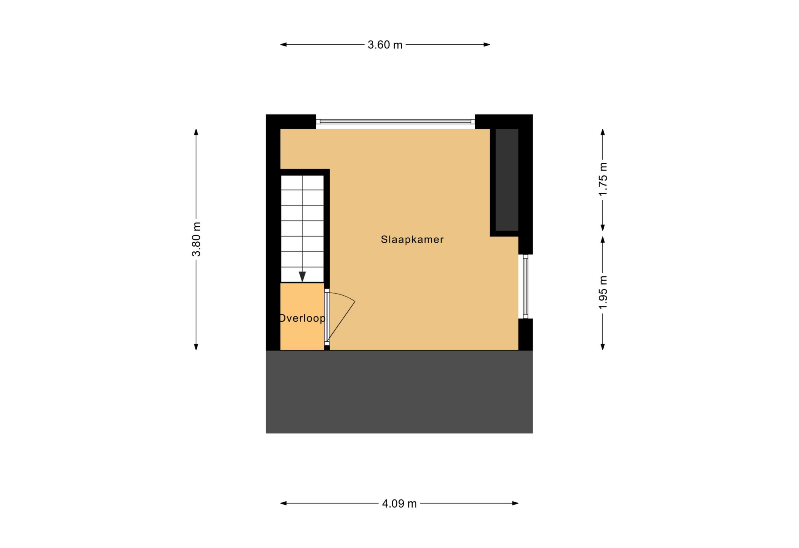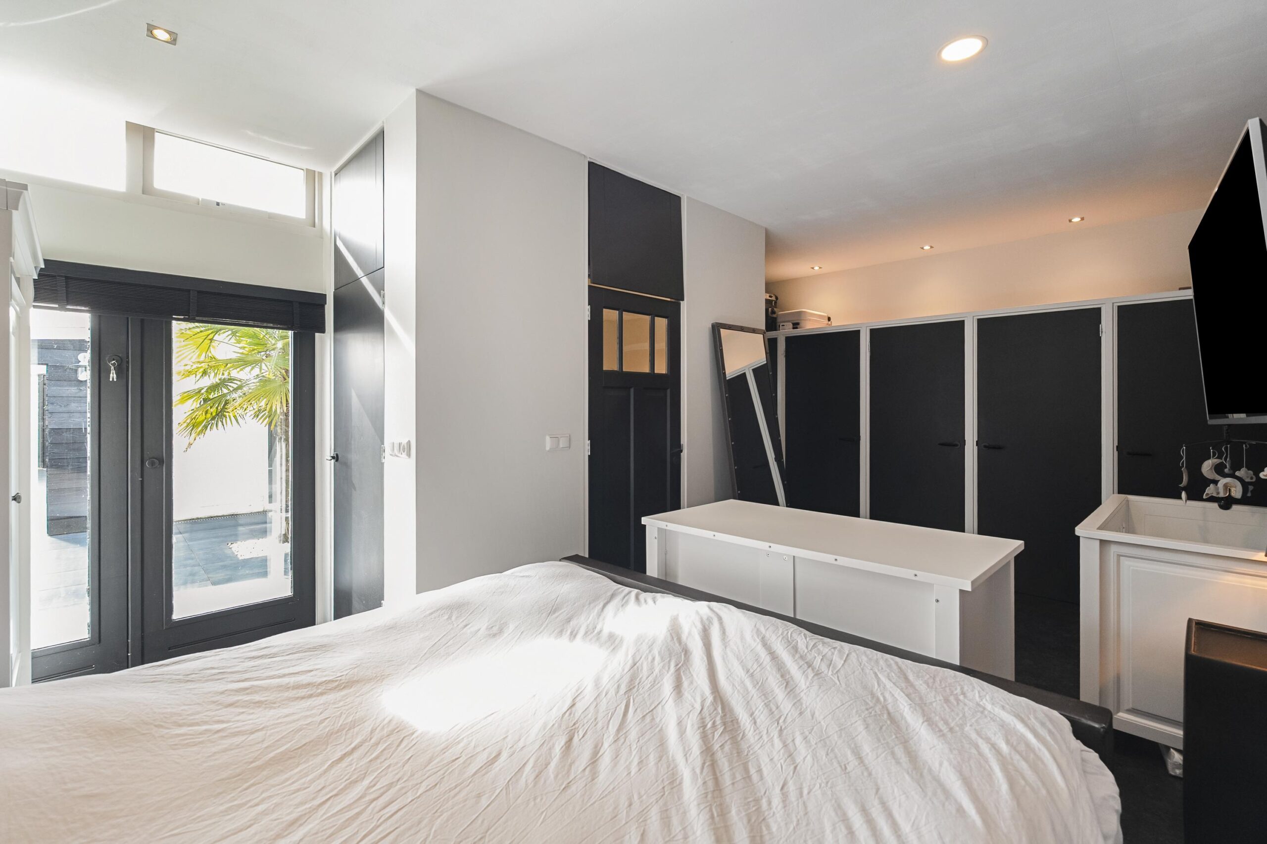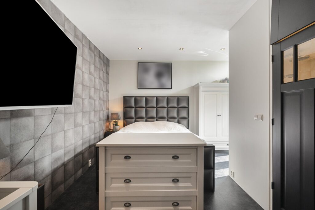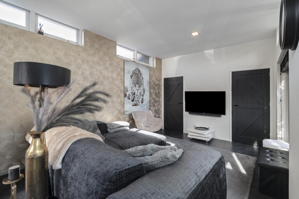 Overloop en een grote slaapkamer in een ruime dakkapel. Door de dakkapel heeft de slaapkamer ook lekker veel natuurlijk licht en voelt ze lekker ruim aan.
