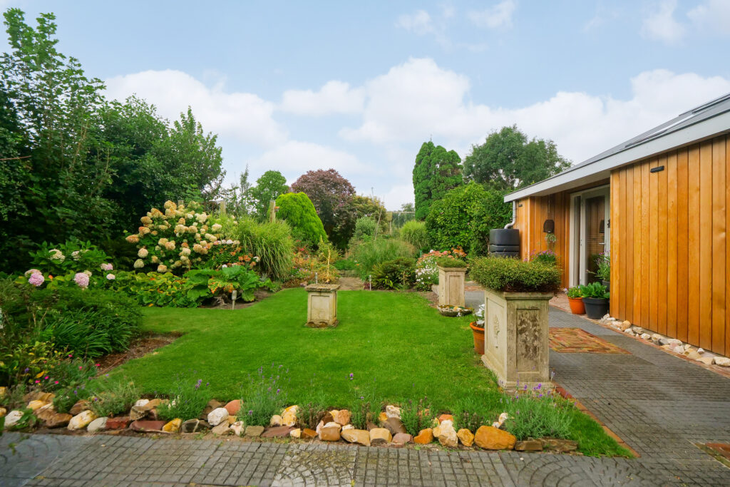 De woning beschikt over in totaal drie royale slaapkamers, waarvan één master-bedroom met inloopkast, openslaande deuren naar de tuin en veel natuurlijk licht. Dit maakt de woning geschikt voor zowel gezinnen als voor wie gelijkvloers en toekomstbestendig wil wonen.
