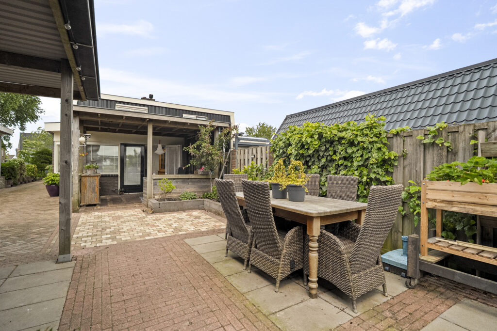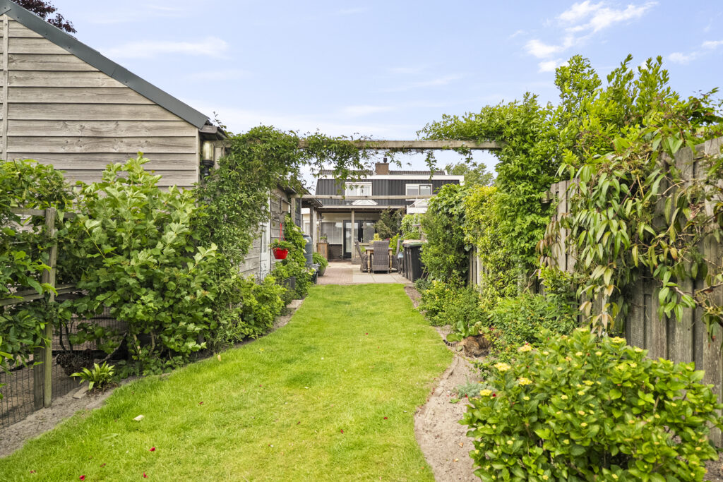De woning beschikt over een prachtige achtertuin, ideaal om te genieten van de zon. Tevens is in de achtertuin een houten schuur aanwezig van ca. 34 m² met een mooie carport ervoor.