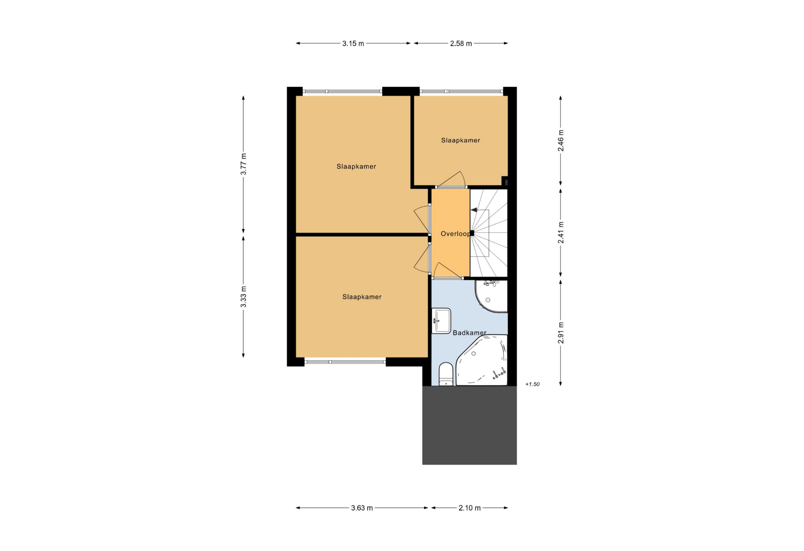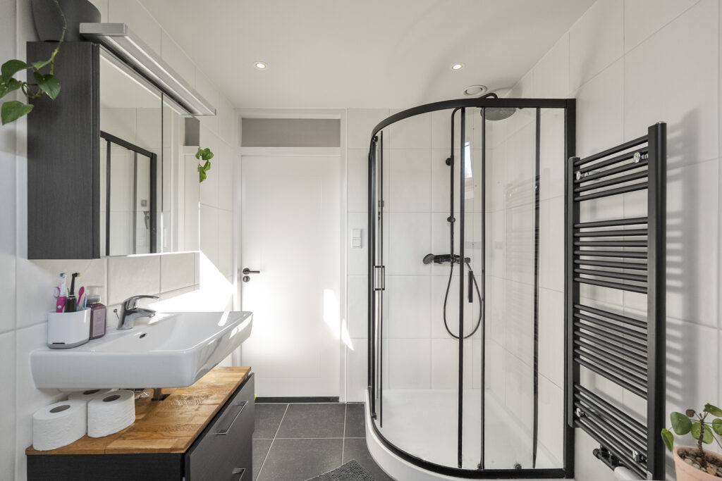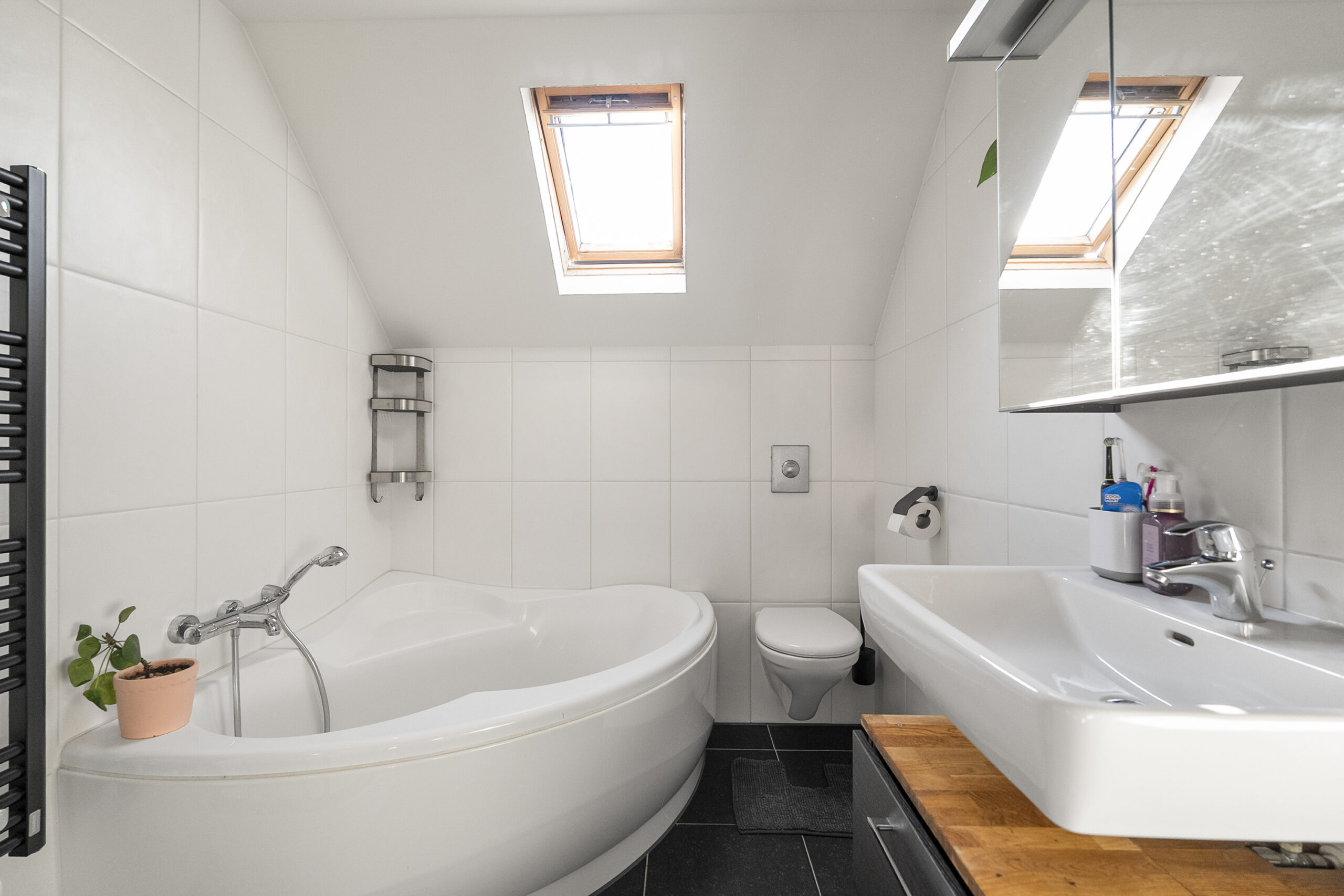 Via de overloop heeft u toegang tot de moderne badkamer met ligbad, douchecabine, radiator, hangend closet en een wastafelmeubel. Verder zijn er drie ruime slaapkamers te vinden en de vaste trap naar de tweede verdieping.