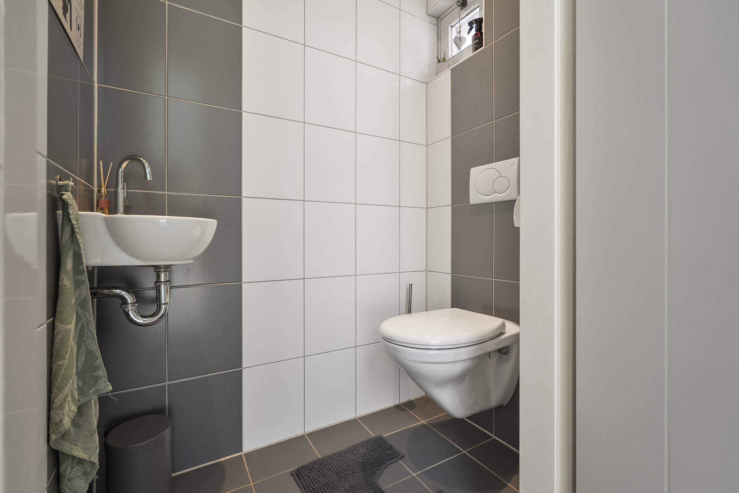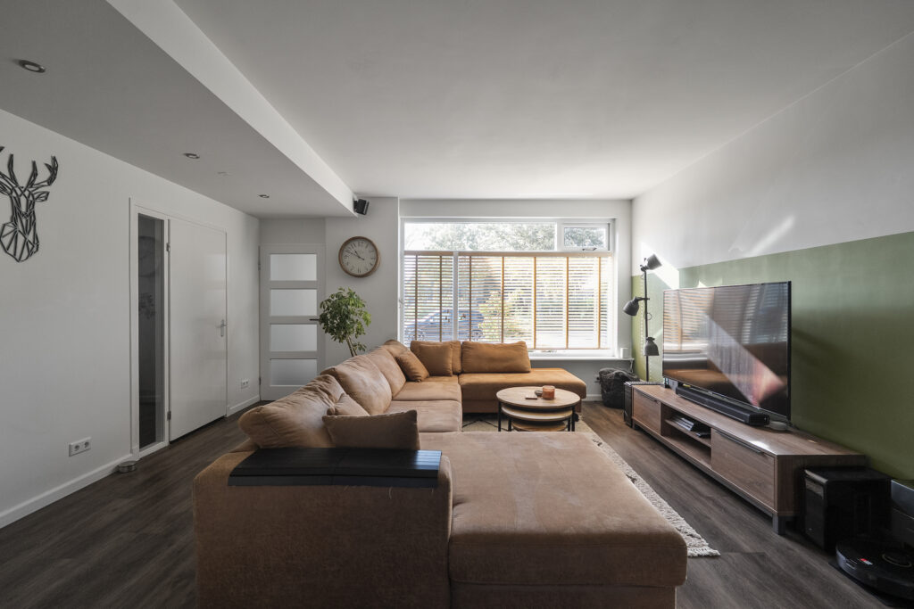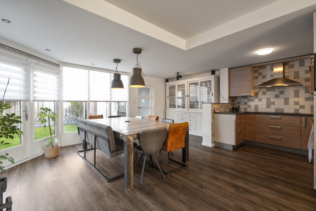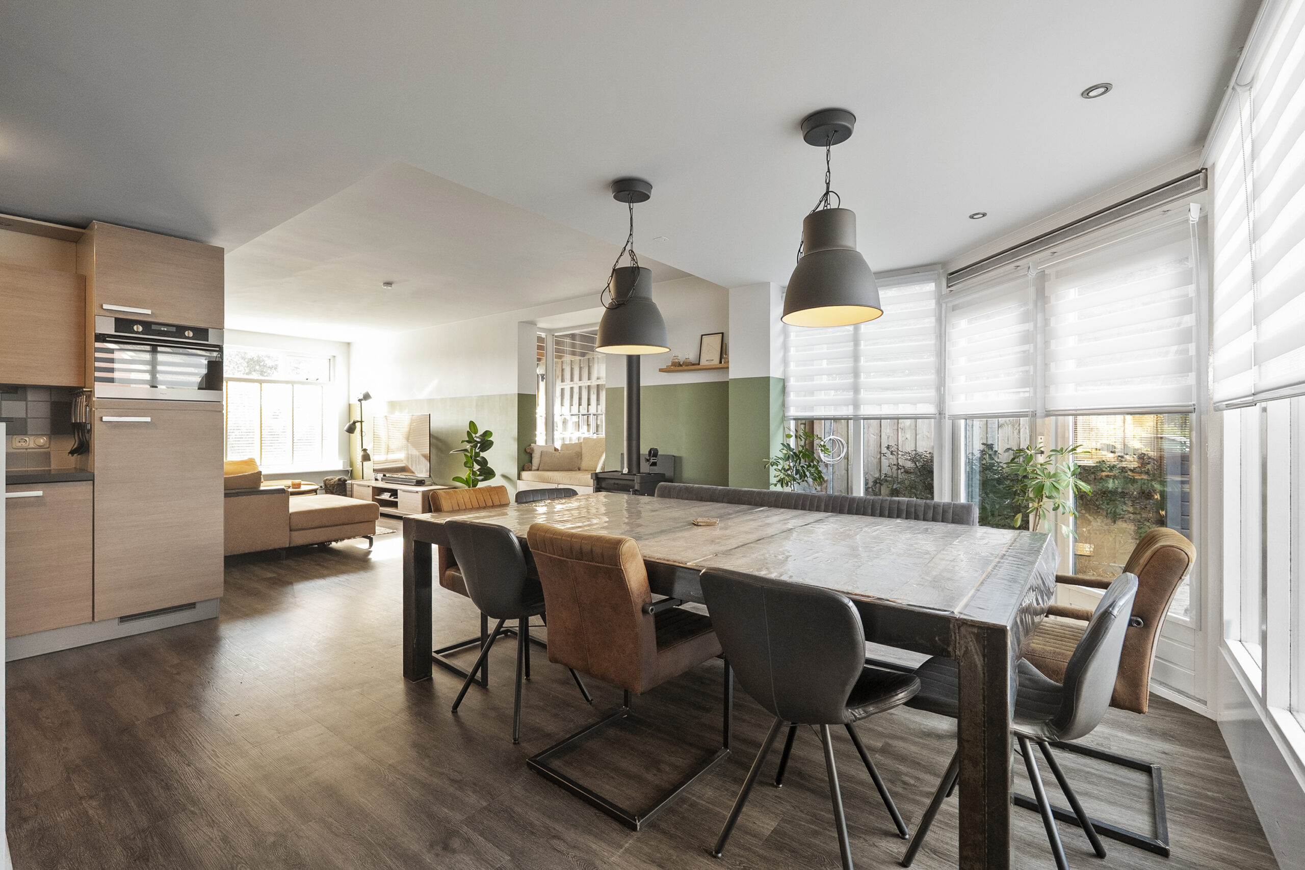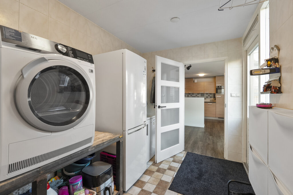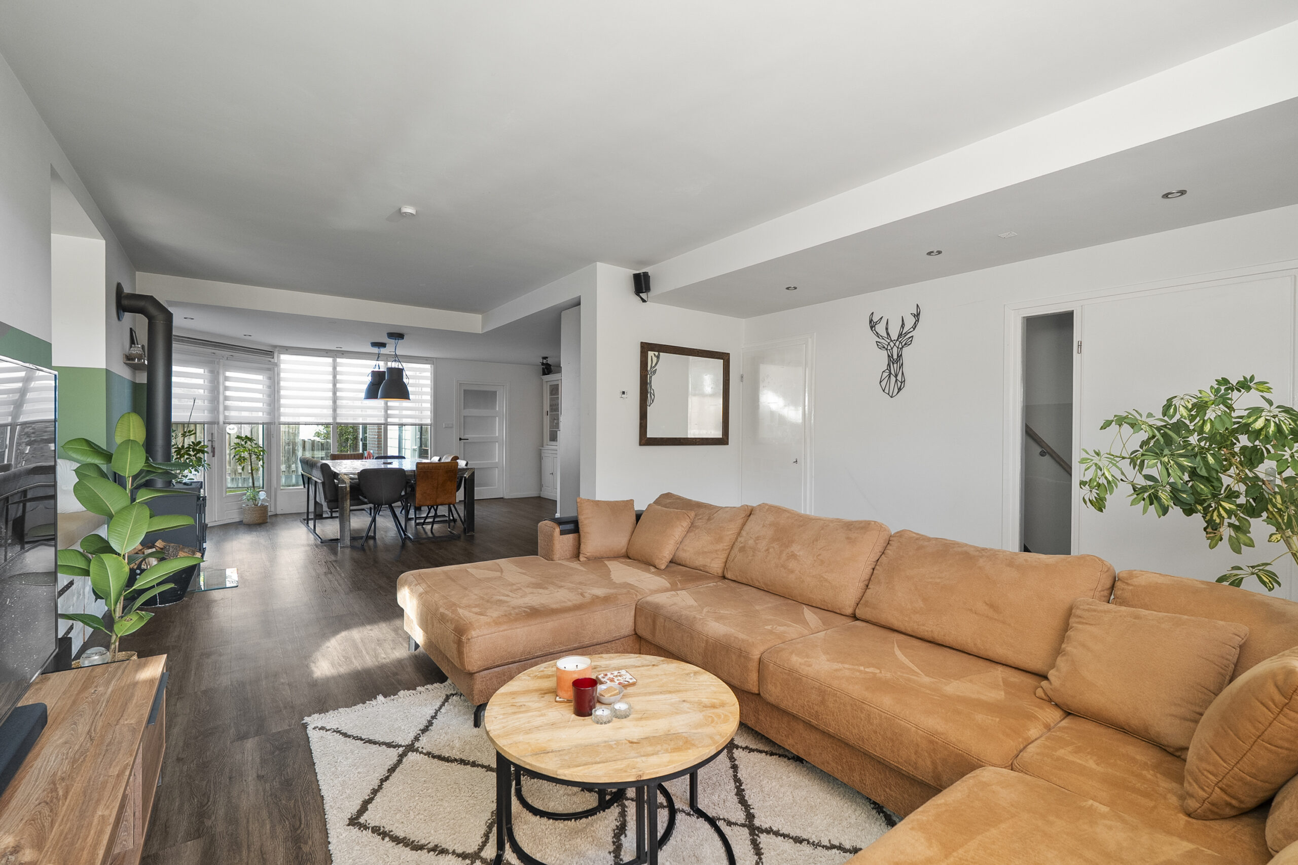 Binnen komend in de entree, vindt u een toiletruimte voorzien van een hangend closet met fontein en de meterkast. Via de woonkamer is de hal naar trap te bereiken. Ook is de woonruimte voorzien van een open hoekkeuken, openslaande deuren naar de tuin en een fraaie houthaard voor de knusse avonden. De keuken is voorzien van diverse inbouwapparatuur zoals een inductiekookplaat, combi-oven, vaatwasser, een koelkast en afzuigkap. In de keuken bevindt zich de deur naar de bijkeuken met daar een wasmachineaansluiting en doorgang naar de berging.