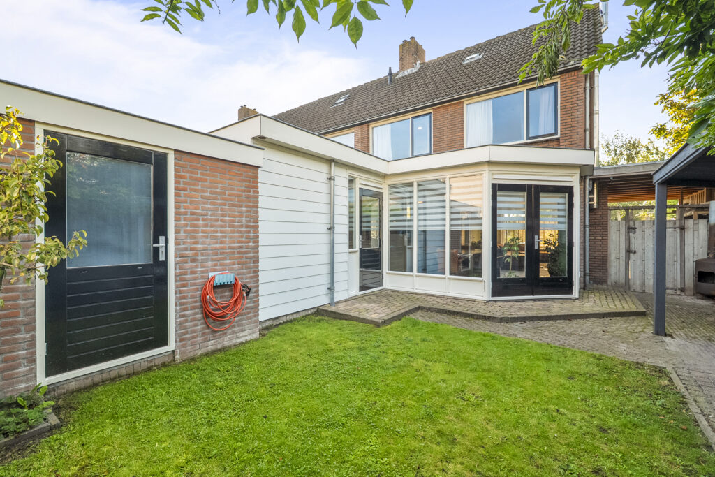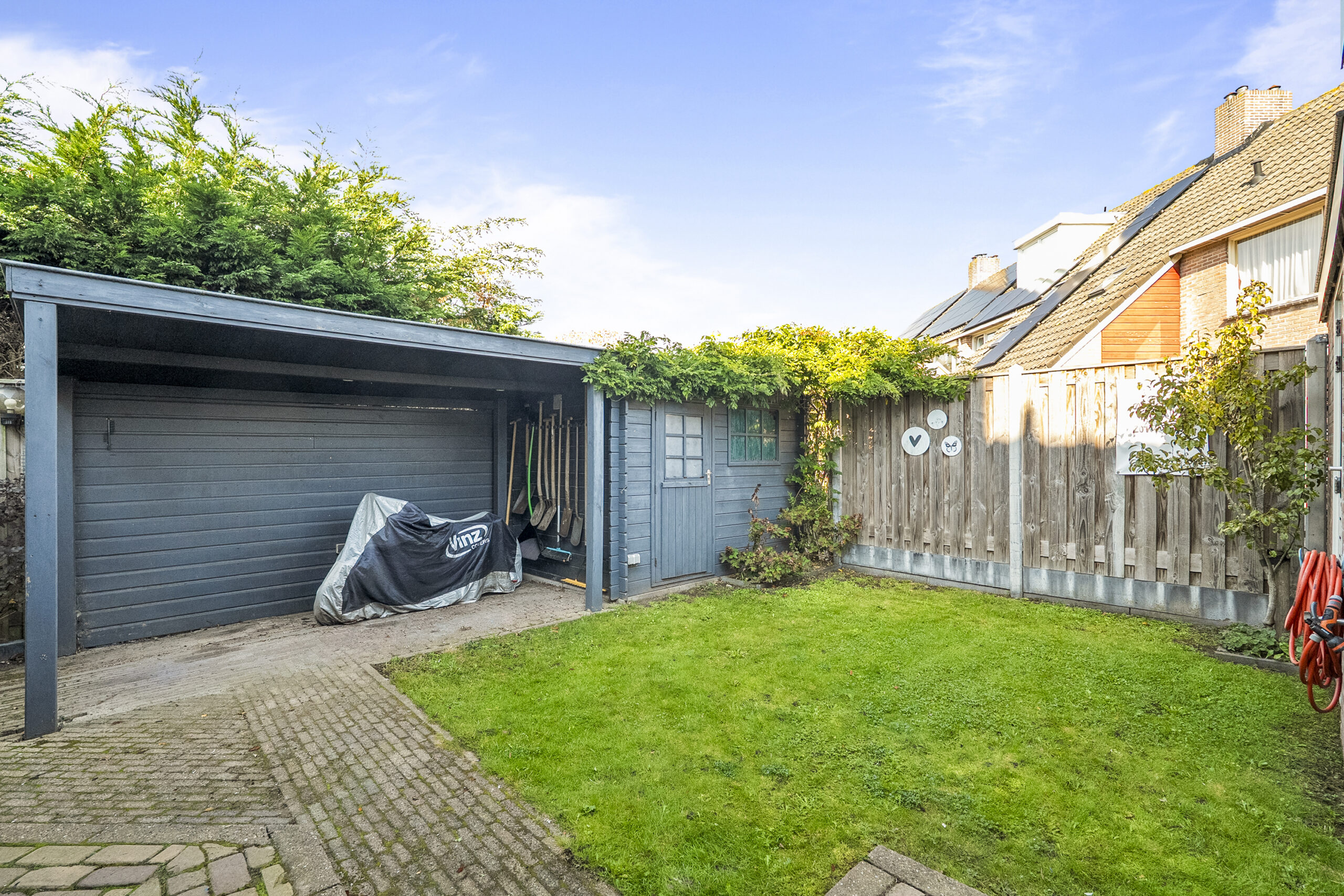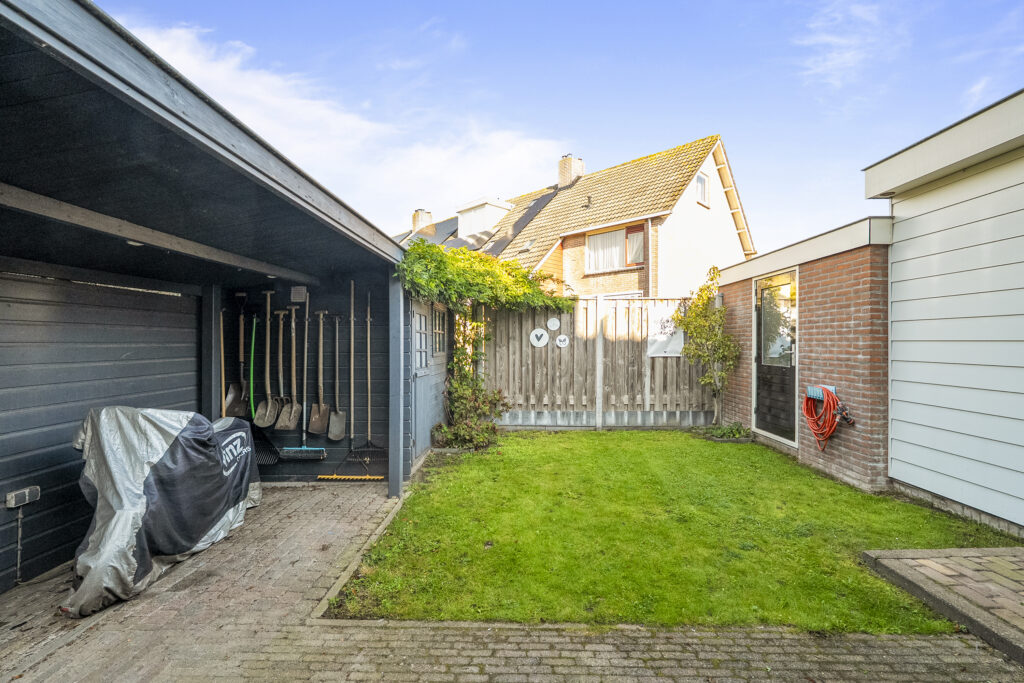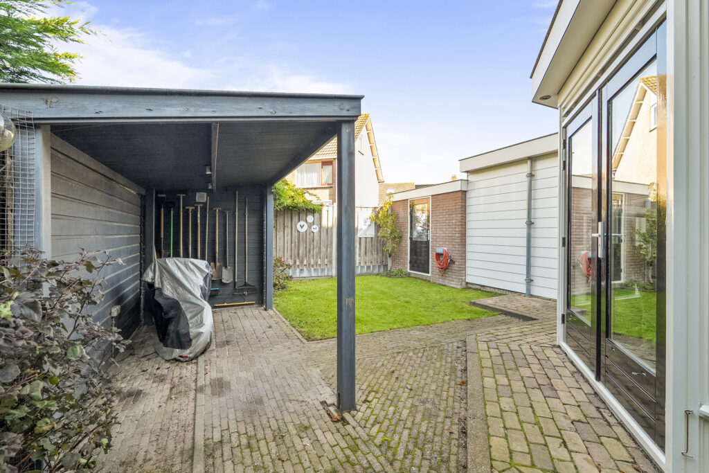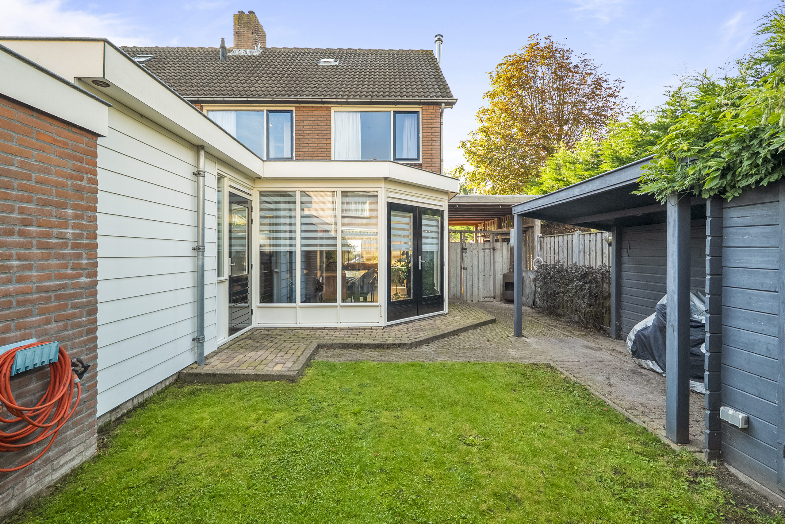 De lange oprit geeft u de ruimte om twee auto's op het pad te parkeren terwijl de houten carport er voor zorgt dat ook uw fietsen droog buiten kunnen blijven staan. Het tuinhuis met overkapping is ideaal als extra opbergruimte voor eventuele tuingereedschappen of tuinmeubelen. De tuin is gelegen op het noordwesten, hierdoor heeft u de kans om de gehele dag te genieten van het zonnetje in de voortuin en/of de achtertuin.
