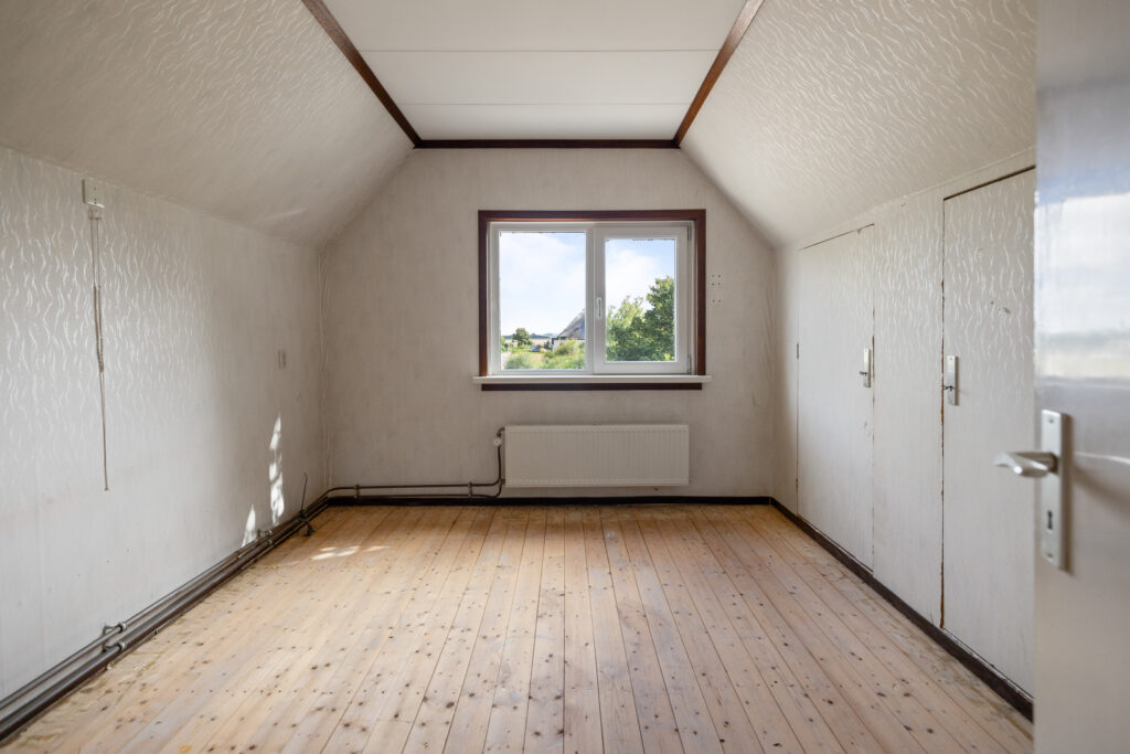 De slaapkamer aan de achterzijde is netjes afgewerkt en goed van formaat.