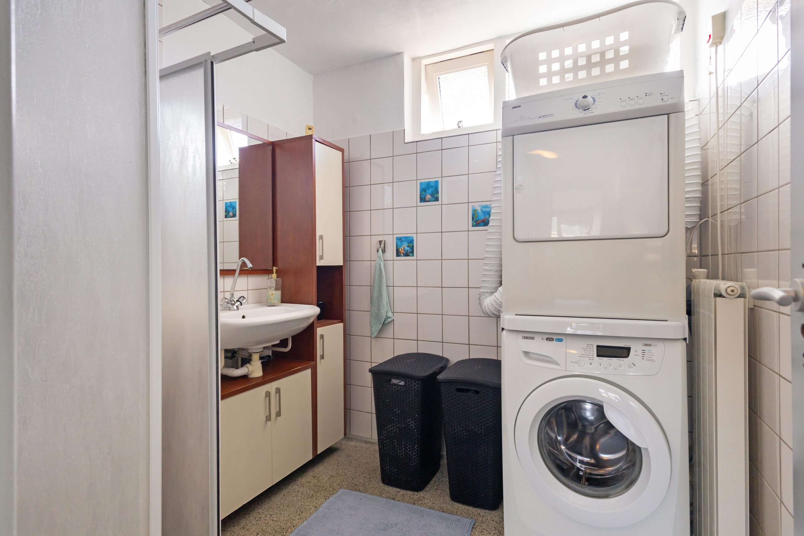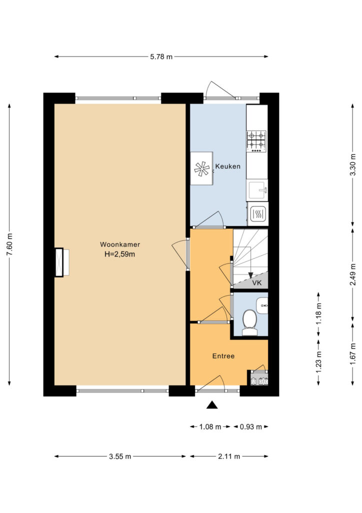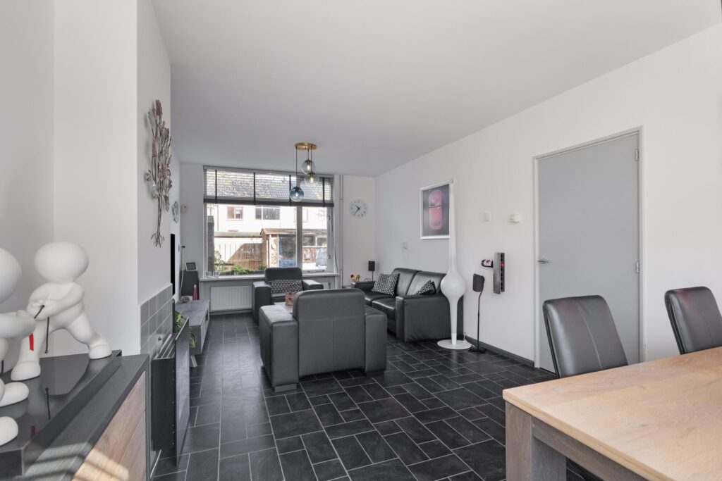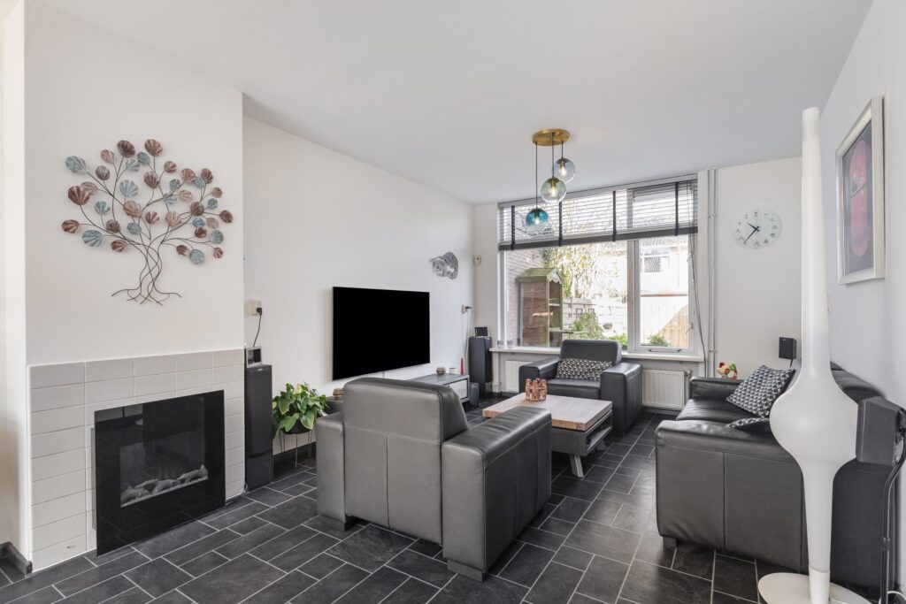 Via de entree aan de voorzijde komt u in de hal met toilet, meterkast en trapopgang. Het toilet is voorzien van een staand closet en fonteintje. De lichte woonkamer beschikt over een laminaatvloer, radiatoren en een elektrische sierhaard. De keuken is separaat van de woonkamer en uitgerust met een combi-oven, vaatwasser en afzuigkap.
