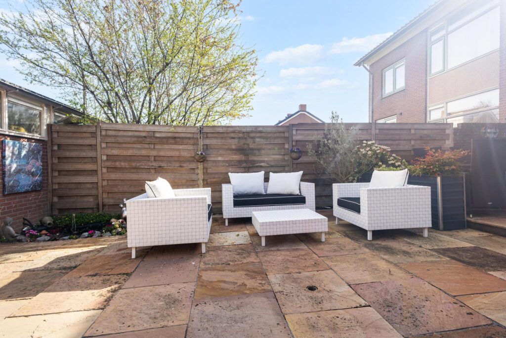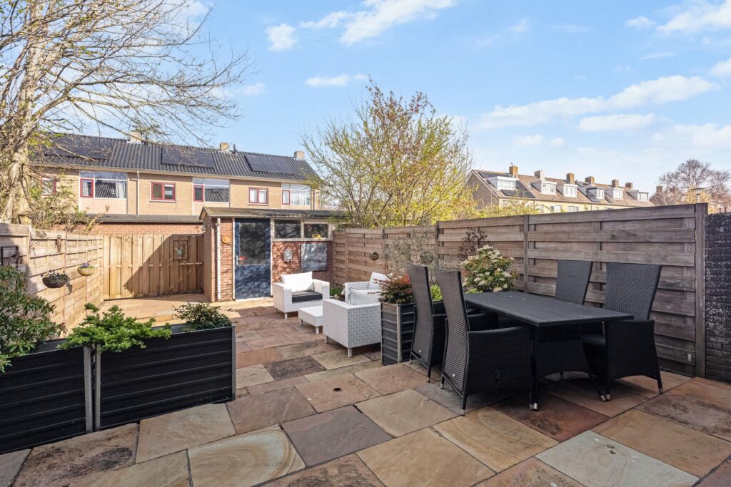 Aan de voorzijde ligt een netjes aangelegde voortuin. De fraai aangelegde achtertuin beschikt over een stenen berging en een achterom. De berging is uitermate geschikt voor het stallen van fietsen en het opbergen van overige spullen.