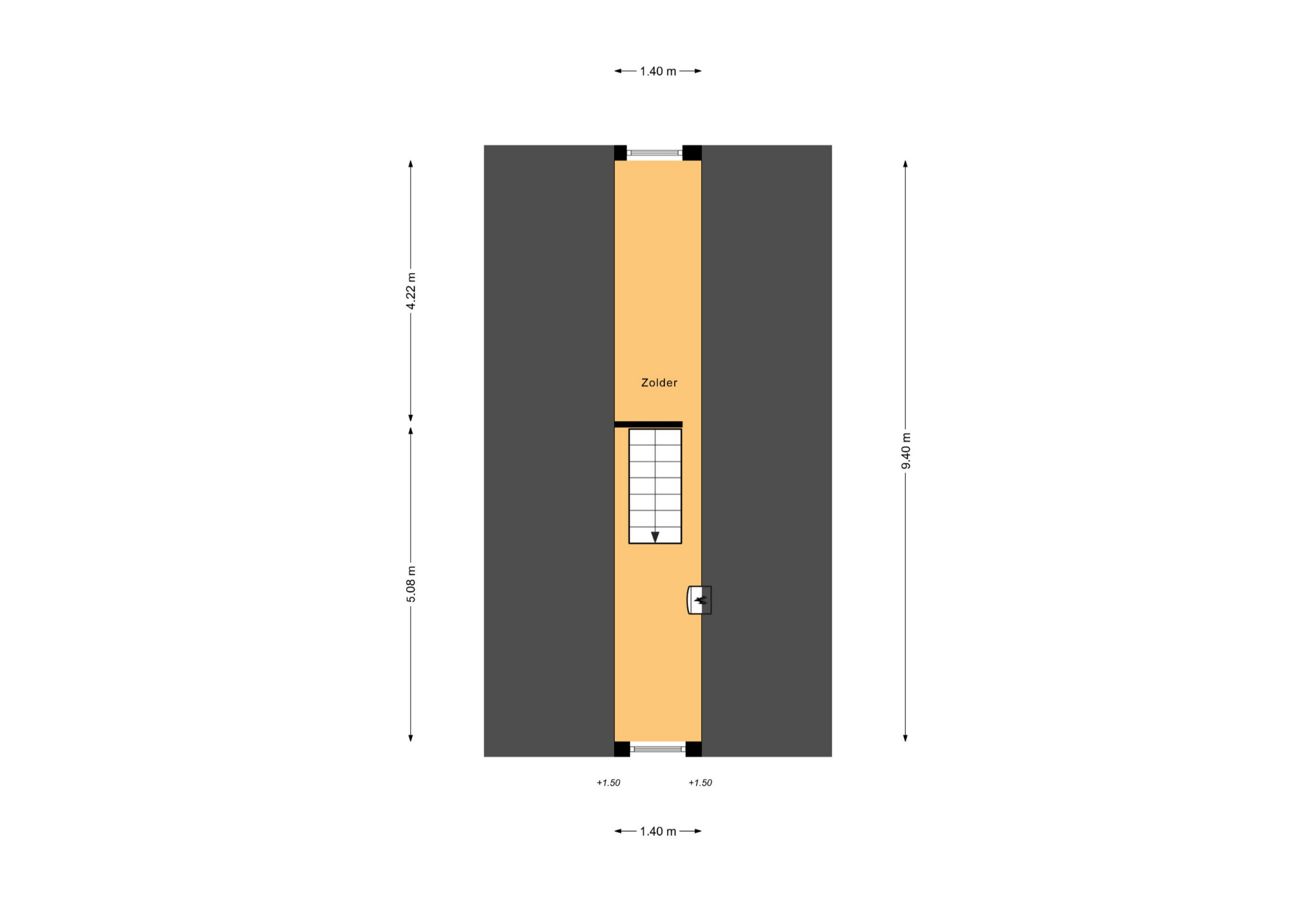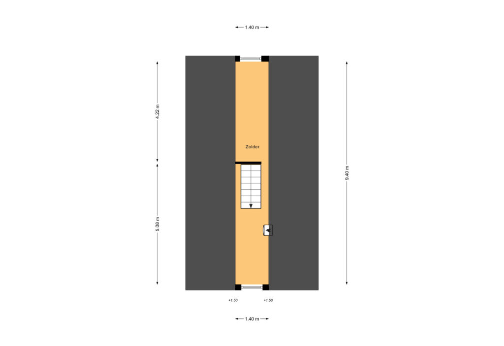 Ruime zolderverdieping, bereikbaar via een vaste trap. Momenteel in gebruik als bergruimte, maar uitermate geschikt als vierde slaapkamer, werkkamer of hobbyruimte. Hier bevindt zich ook de opstelling van de Cv-ketel (Remeha Calenta, bouwjaar 2010). Met het plaatsen van een dakkapel kan deze verdieping aanzienlijk worden vergroot.