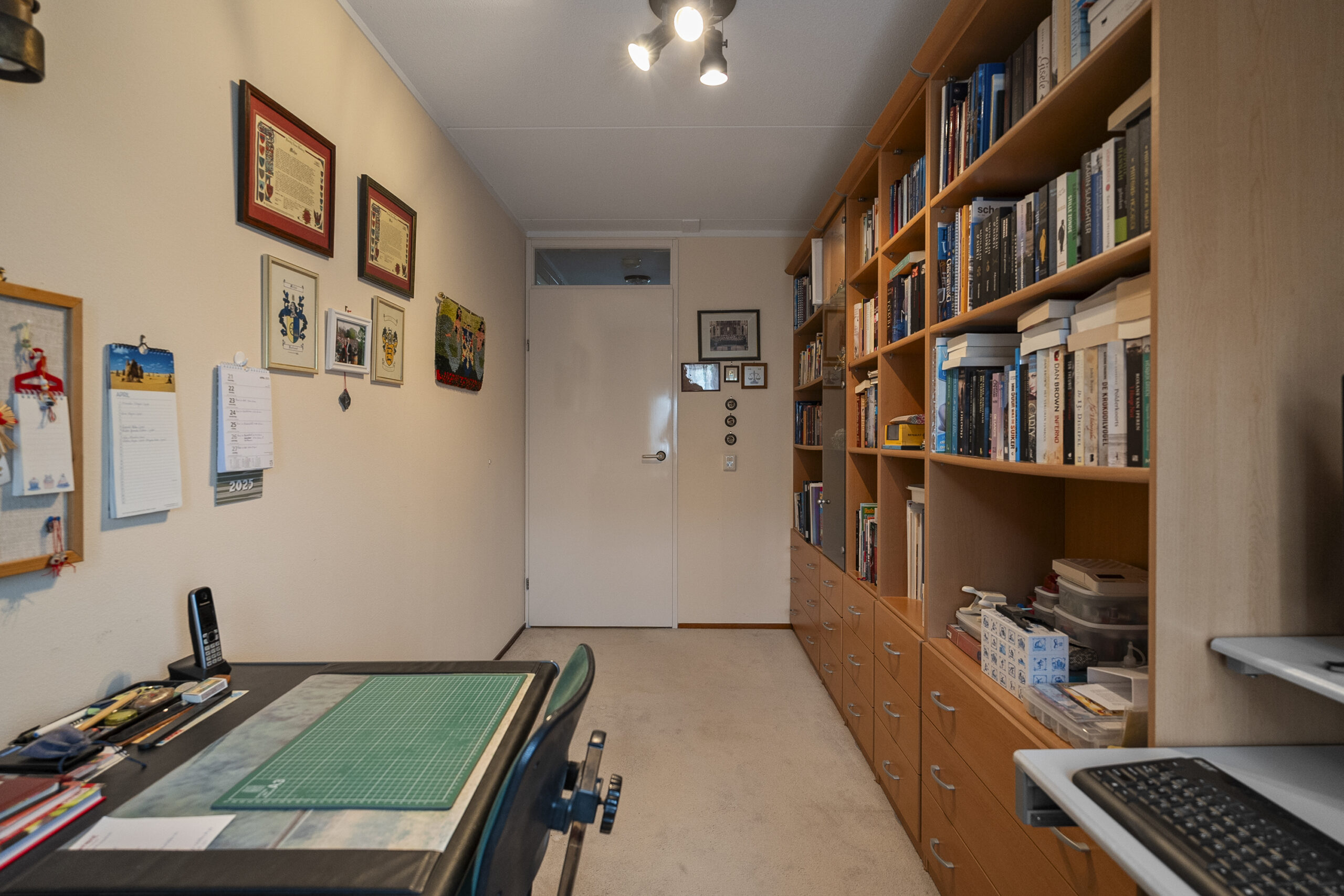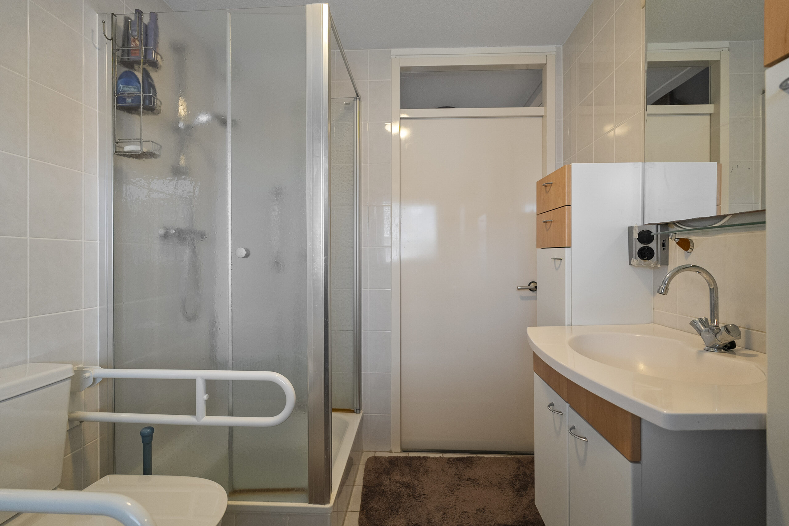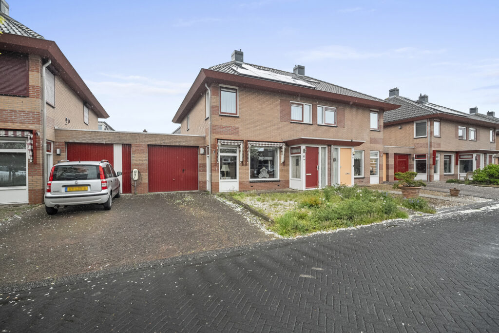 De woning beschikt over een eigen garage met elektrische deur die plaats biedt aan bijvoorbeeld fietsen, gereedschappen, tuinspullen of zelfs een auto. Voor de garage is plek voor het parkeren van je auto op eigen terrein.