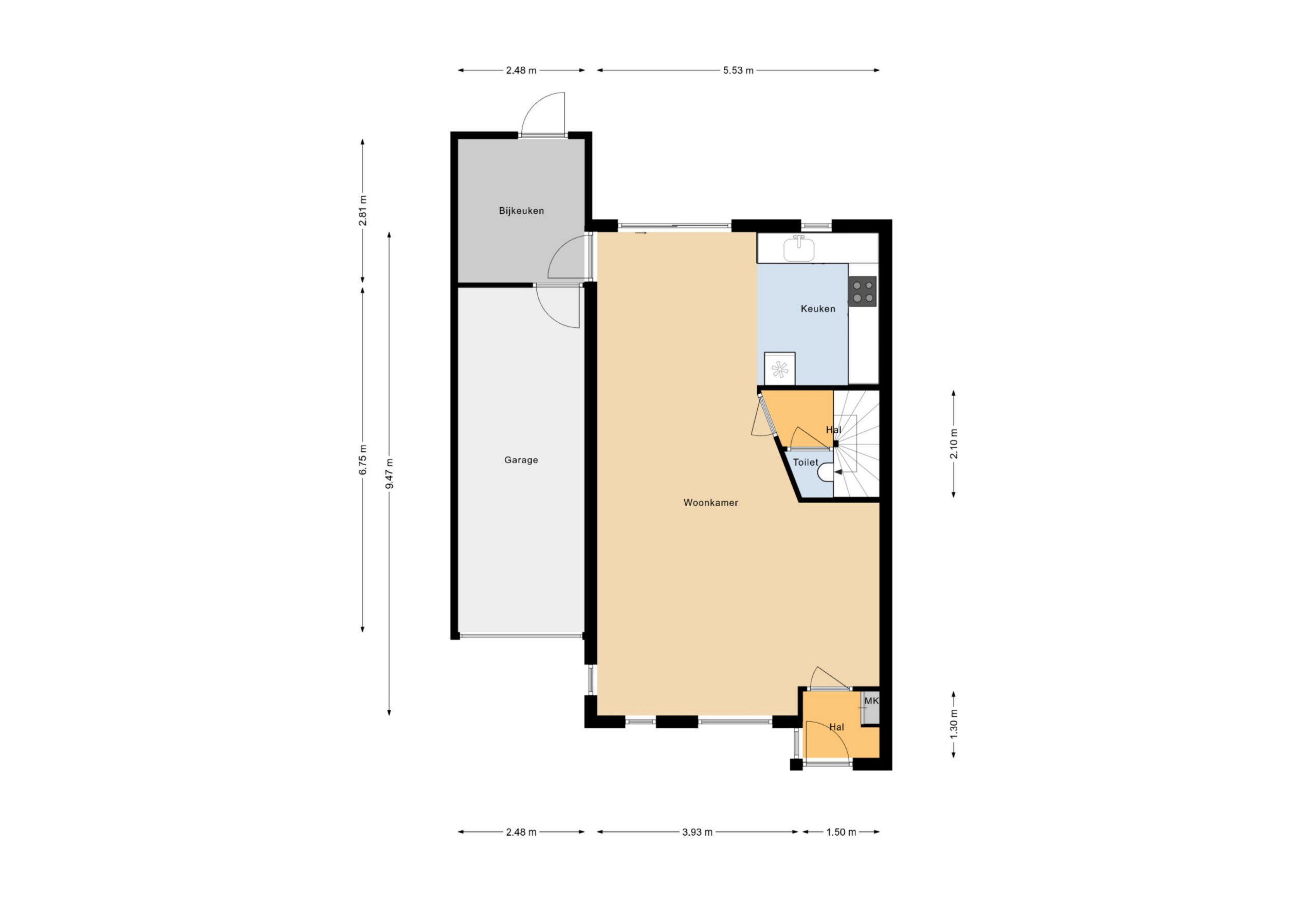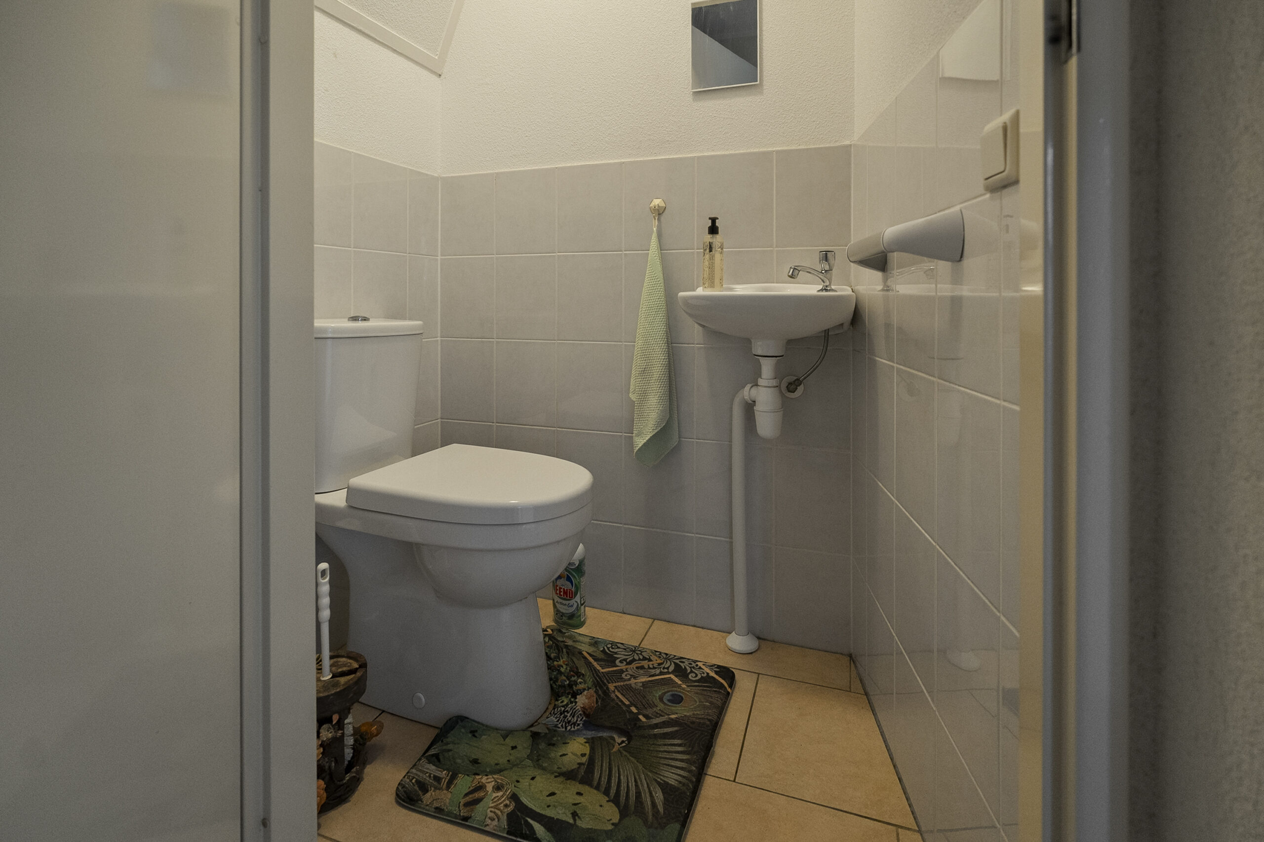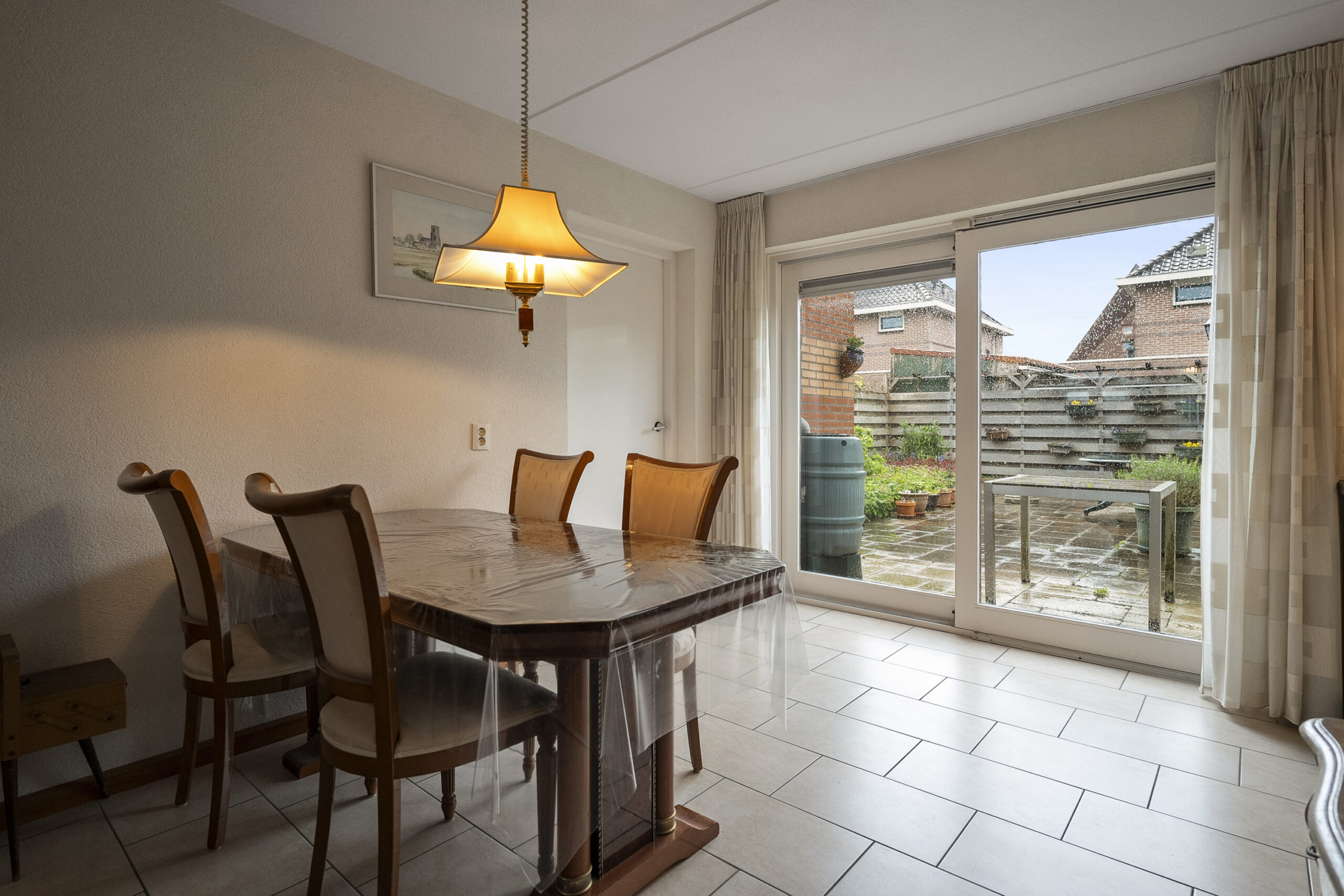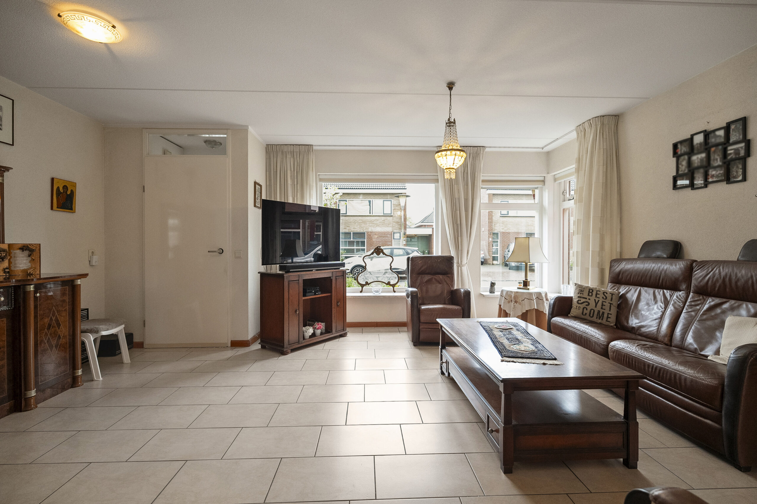 De entree is aan de voorzijde in een kleine hal waarna u direct in de ruime woonkamer uitkomt met een straatgerichte zithoek. De eethoek en keuken zijn tuingericht en middels een kamerbrede schuifpui loopt u ook zo de achtertuin in. Deze grote raampartij zorgt, net als de grote ramen aan de voorzijde, voor veel natuurlijk licht. Het geheel is netjes afgewerkt en goed onderhouden. Vanuit de keuken is er nog een bijkeuken met ruimte voor extra keukenapparatuur en de wasmachine/droger. Van hieruit loopt u binnendoor de garage in.