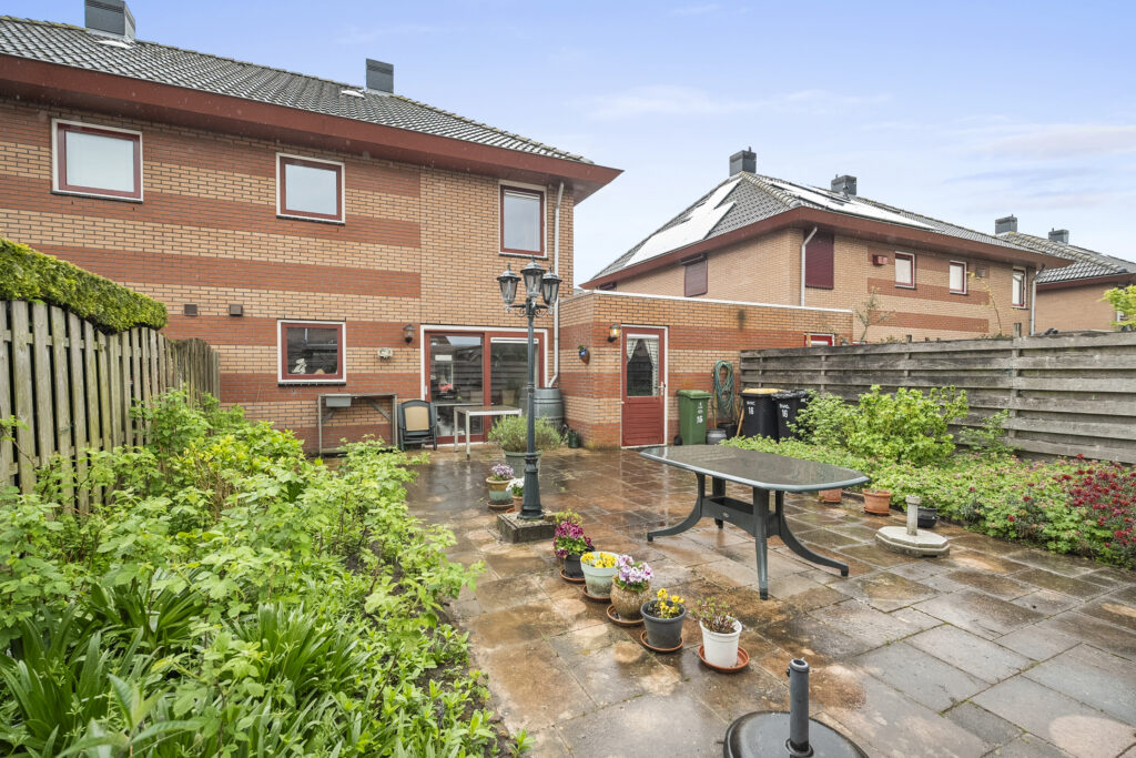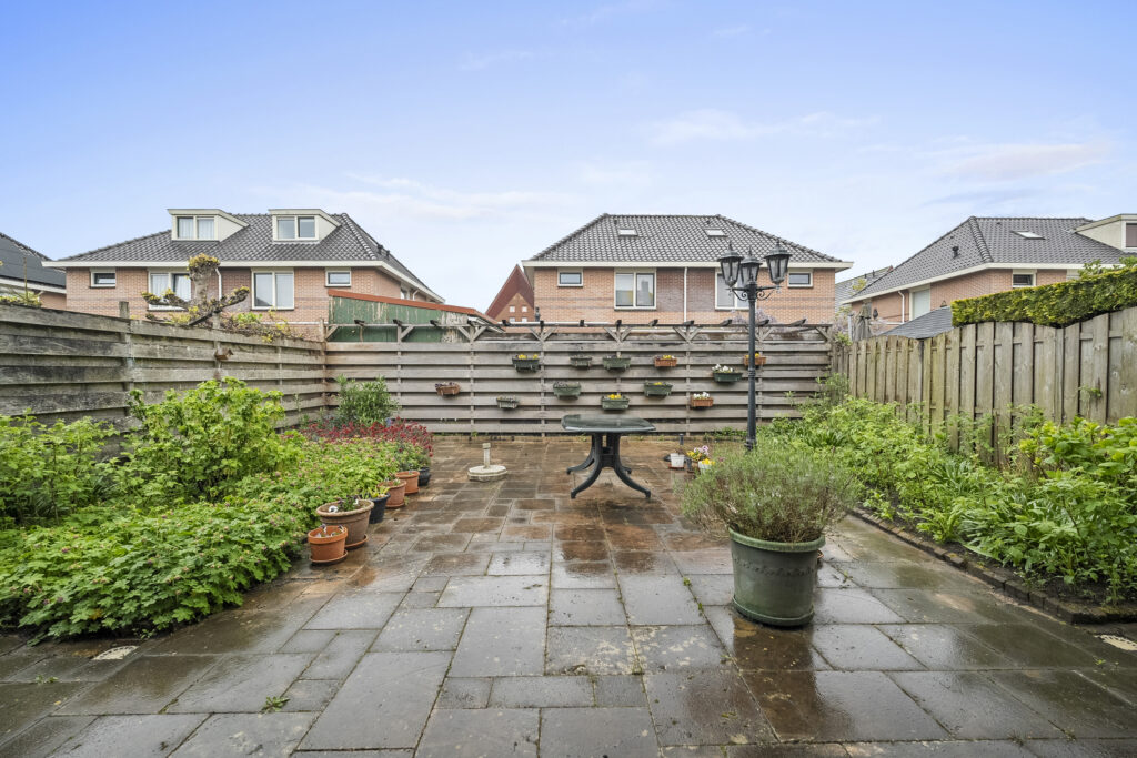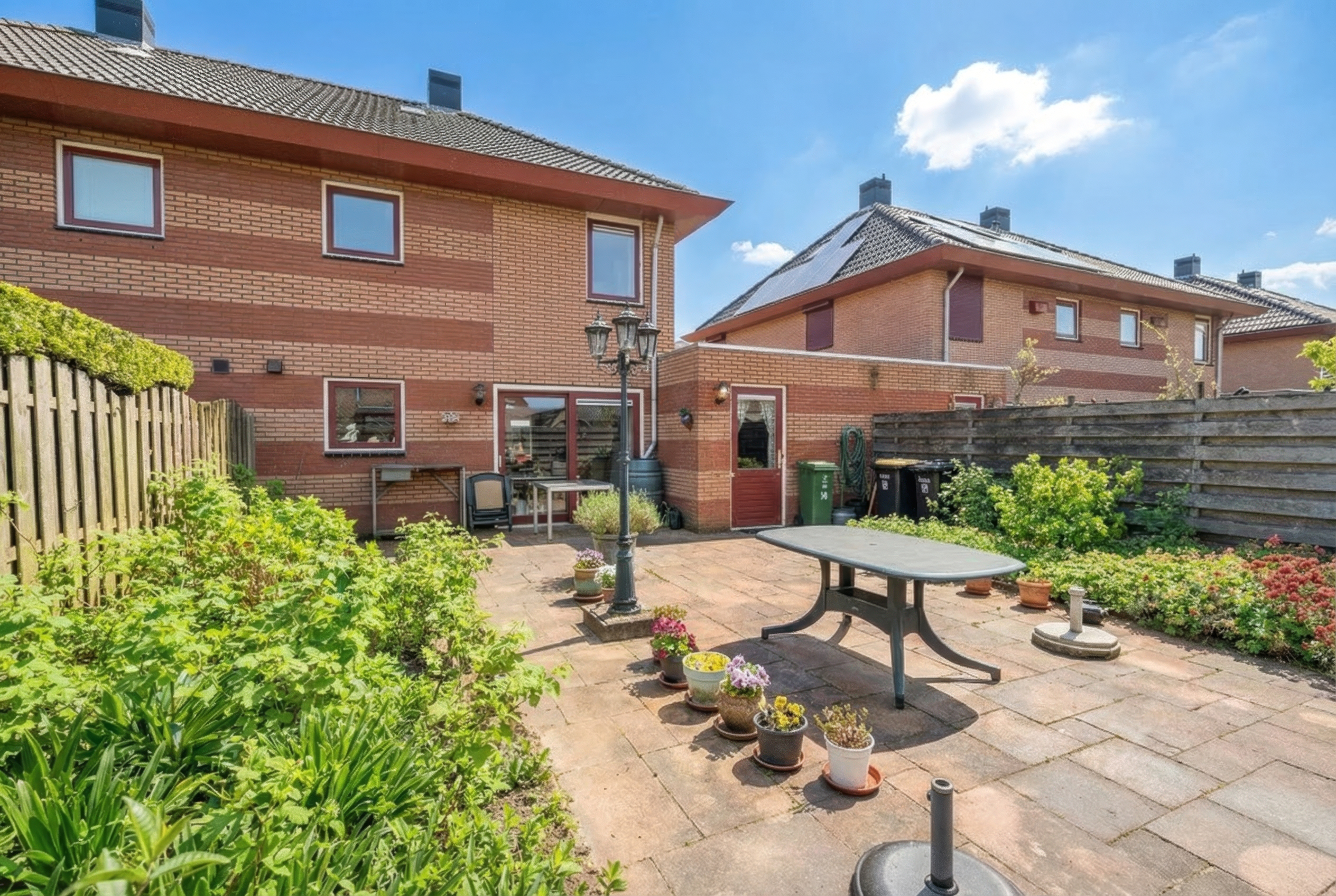 De woning heeft een goed onderhouden tuin aan de achterzijde en ook een ruime voortuin aan de voorzijde. De achtertuin is noordoost georiënteerd en biedt voldoende ruimte om te ontspannen en te genieten van de buitenlucht. U geniet hier vooral van de ochtend- en middagzon, maar ook van de laatste zonnestralen van de dag. Door de forse afmeting is er eigenlijk altijd wel ergens zon in de tuin.