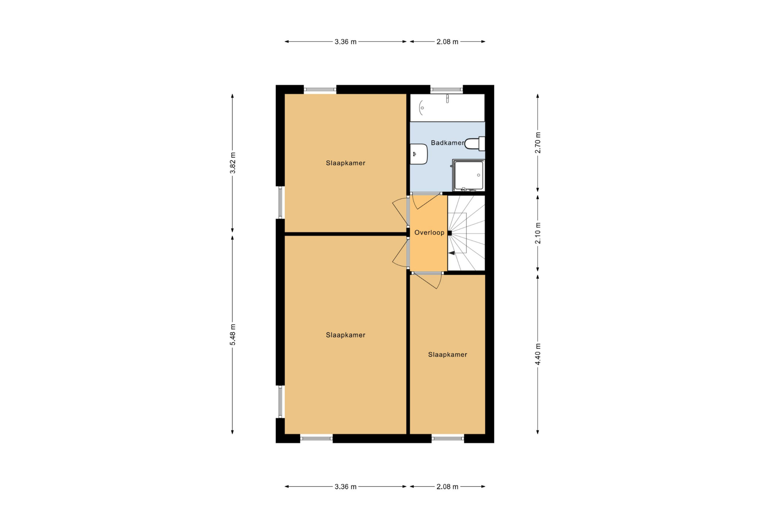 Op de eerste verdieping van het huis bevinden zich de overloop, 3 slaapkamers en een badkamer. De badkamer is voorzien van diverse faciliteiten zoals een toilet, douche, ligbad en wastafel. De tweede verdieping is te bereiken via een vaste trap. Hier is de CV-opstelling en voldoende ruimte om een extra slaapkamer of hobbykamer te realiseren.