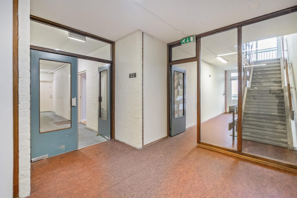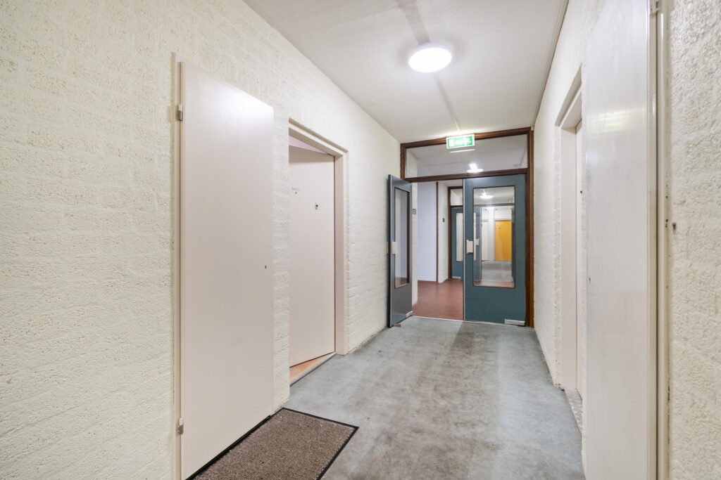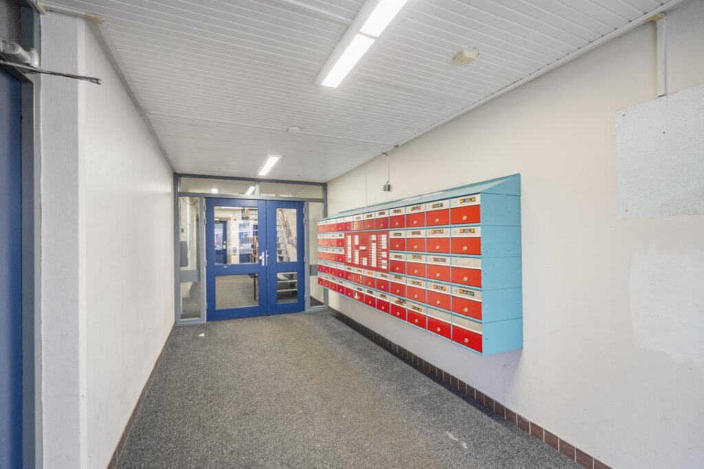 Gesloten gezamenlijke entree met bel-/intercominstallatie, brievenbussen, trappenhuis, lift en alle berginboxen van de bewoners.