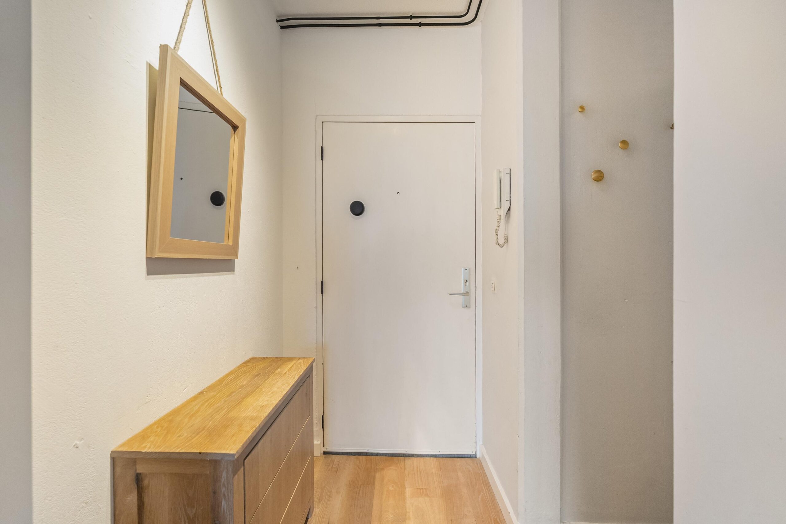 Via de voordeur kom je in de entreehal, die in een open verbinding staat met de woonkamer.