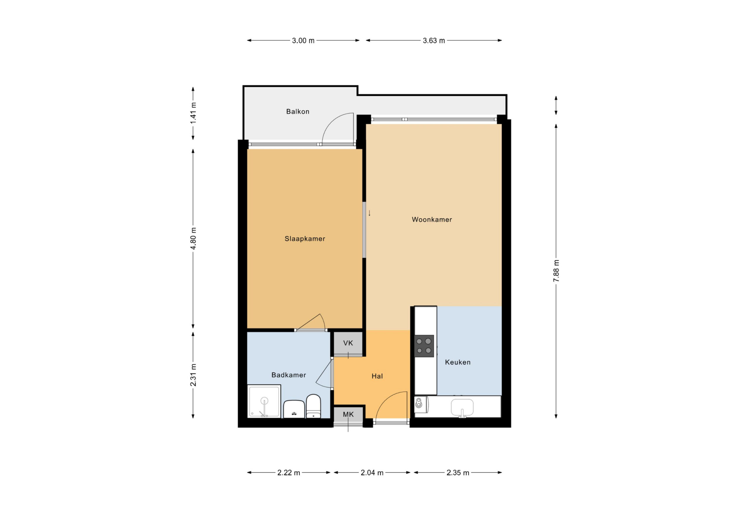 De sfeervolle woonkamer met de fraaie open keuken heeft grote raampartijen, waardoor er veel natuurlijk licht binnenvalt. Dit biedt tevens een mooi uitzicht over de groene naastgelegen wijk. De moderne open keuken is strak en tijdloos uitgevoerd en voorzien van diverse inbouwapparatuur, waaronder een 4-pits kookplaat, combimagnetron/oven, koelkast en vaatwasser. Vanuit de woonkamer is de ruime slaapkamer bereikbaar. Dankzij het grote raam is ook hier volop lichtinval en een prettig uitzicht. De slaapkamer biedt tevens directe toegang tot het balkon op het noordwesten en de badkamer. De moderne badkamer is compleet uitgevoerd met een wastafelmeubel, inloopdouche en aansluitingen voor de wasmachine en droger. De badkamer is ook vanuit de gang te bereiken.