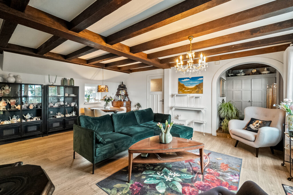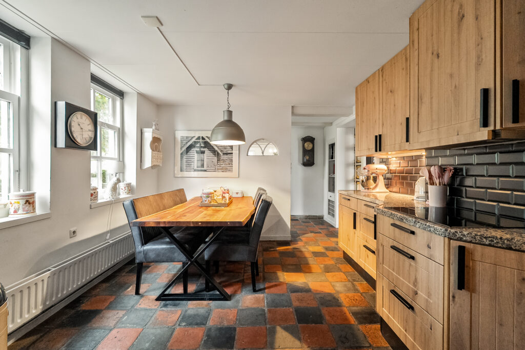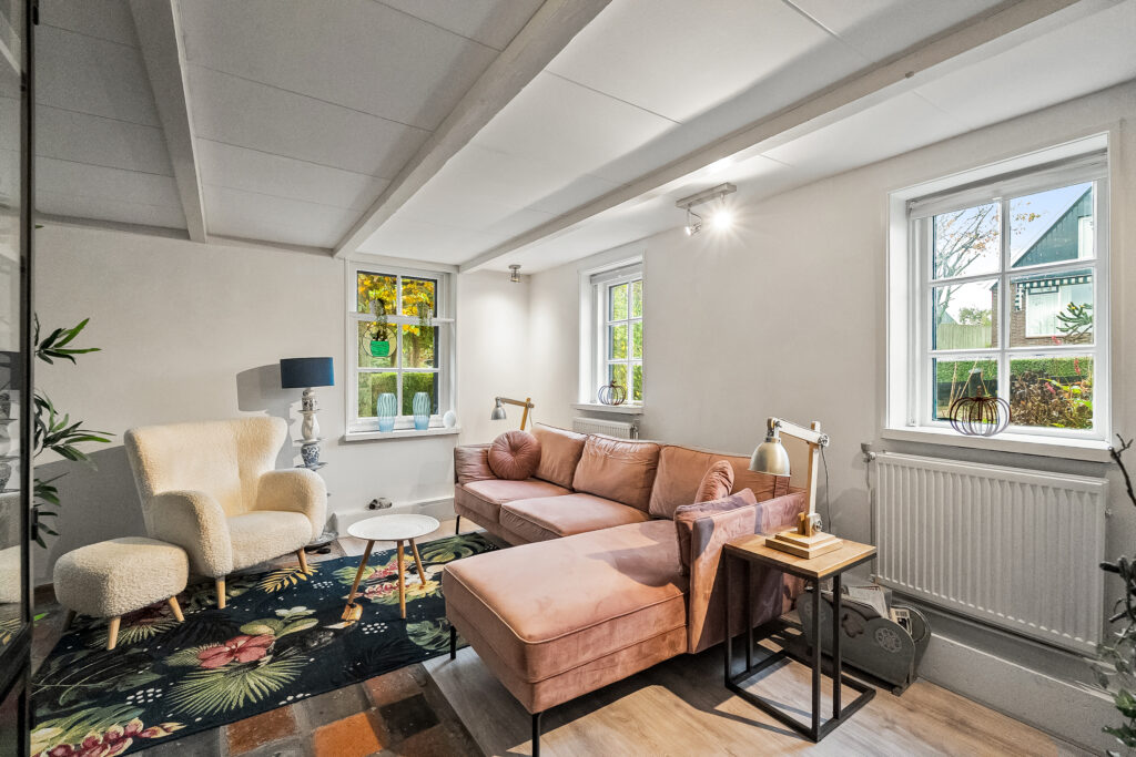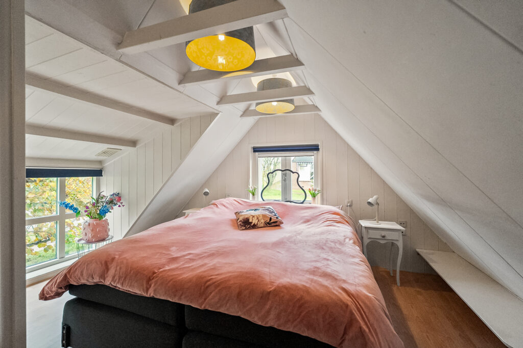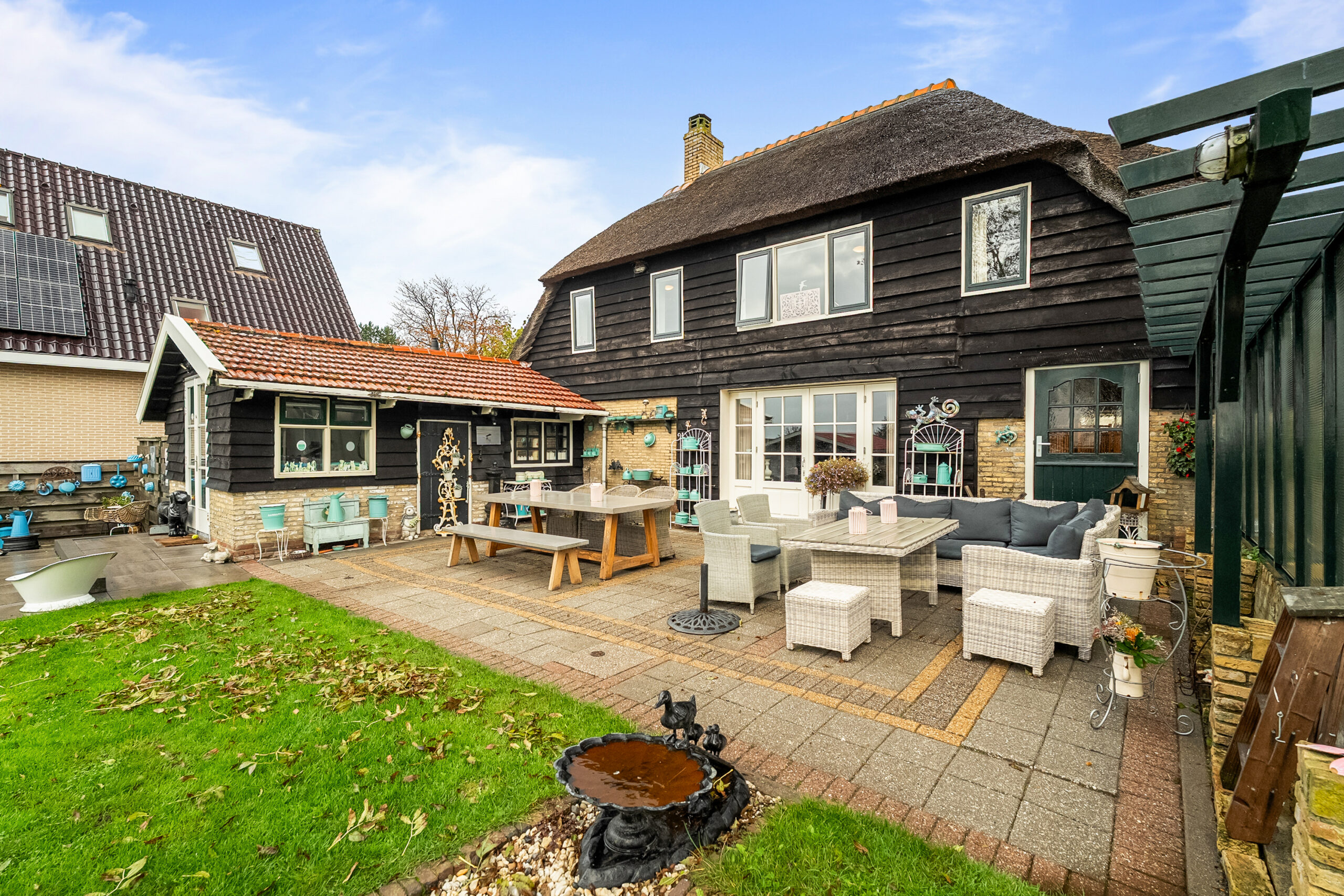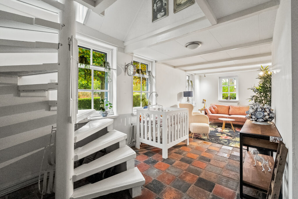Binnen is de woning een warme en sfeervolle plek, waar het authentieke karakter van de boerderij prachtig samengaat met het hedendaagse comfort. De ruime woonkamer biedt een schitterend uitzicht over het Amstelmeer en heeft via openslaande deuren direct toegang tot het terras. Authentieke elementen zoals de balken en vloer met tegels benadrukken de historische charme van de woning. Via de woonkamer bereikt u de landelijke keuken, die is voorzien van moderne apparatuur en alledaagse gemakken, maar afgewerkt in een stijl die past bij het boerderijkarakter. Vanuit de keuken heeft u toegang tot zowel de bijkeuken als de hobbyruimte. De bijkeuken is praktisch ingericht met ruimte voor de witgoedopstelling en de cv-installatie. De aangrenzende hobbyruimte met eigen entree is momenteel in gebruik als trimsalon, maar kan eenvoudig worden aangepast naar bijvoorbeeld een eetkamer, slaapkamer of kantoor. Deze ruimte is bereikbaar via een eigen voetpad aan de rechterzijde van de woning. Aan de voorzijde van de woning bevindt zich de gezellige tv-kamer, een fijne plek om samen te komen. De badkamer is volledig betegeld en voorzien van een whirlpool, wastafelmeubel, toilet en een douchecabine. Een open trap met vide leidt naar de bovenverdieping. Aan de linkerzijde bevindt zich een ruime slaapkamer met dakkapel. In totaal zijn er vier slaapkamers op deze verdieping, waarvan drie ruim van formaat en één momenteel ingericht als kantoor. De authentieke details, zoals zichtbare houten balken, geven ook hier het karakter van de woning mooi weer. Vanuit de master-bedroom is de vliering bereikbaar, ideaal voor extra bergruimte.