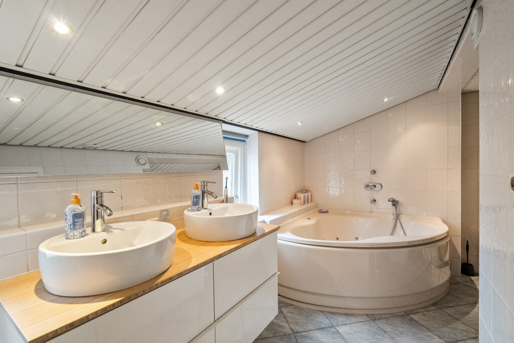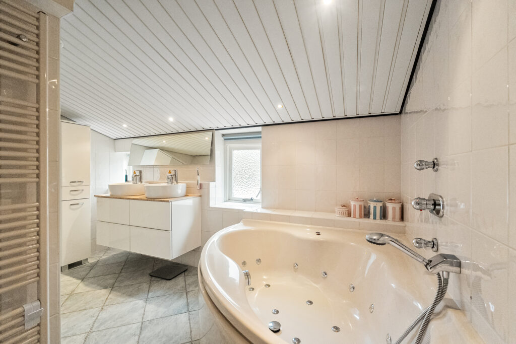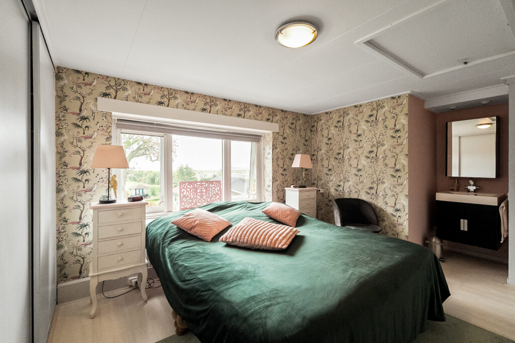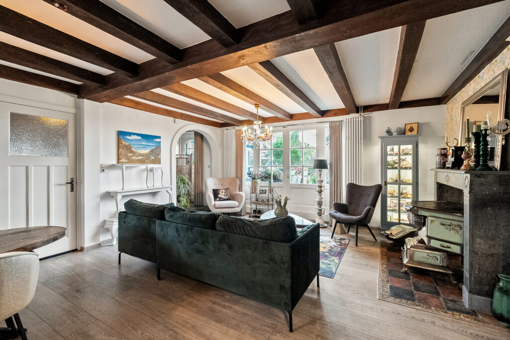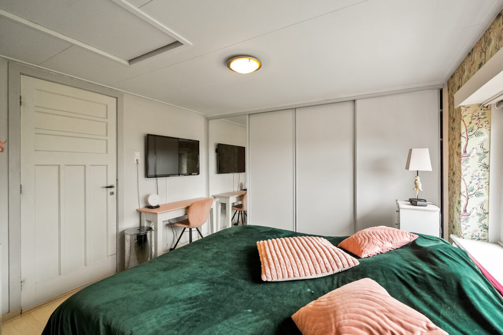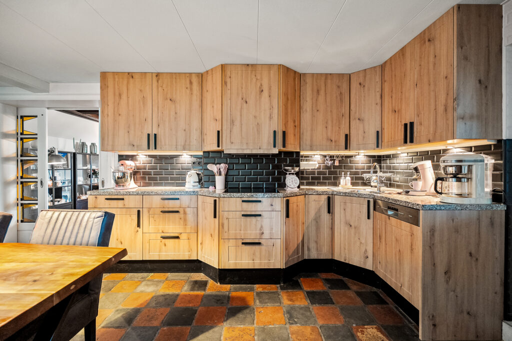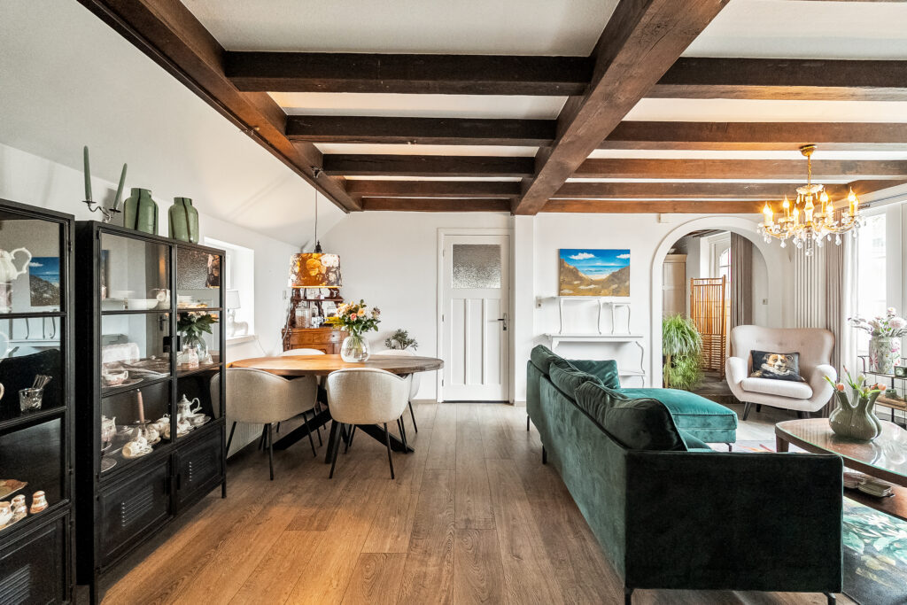 Binnen is de woning een warme en sfeervolle plek, waar het authentieke karakter van de boerderij prachtig samengaat met het hedendaagse comfort. De ruime woonkamer biedt een schitterend uitzicht over het Amstelmeer en heeft via openslaande deuren direct toegang tot het terras. Authentieke elementen zoals de balken en vloer met tegels benadrukken de historische charme van de woning. Via de woonkamer bereikt u de landelijke keuken, die is voorzien van moderne apparatuur en alledaagse gemakken, maar afgewerkt in een stijl die past bij het boerderijkarakter. Vanuit de keuken heeft u toegang tot zowel de bijkeuken als de hobbyruimte. De bijkeuken is praktisch ingericht met ruimte voor de witgoedopstelling en de cv-installatie. De aangrenzende hobbyruimte met eigen entree is momenteel in gebruik als trimsalon, maar kan eenvoudig worden aangepast naar bijvoorbeeld een eetkamer, slaapkamer of kantoor. Deze ruimte is bereikbaar via een eigen voetpad aan de rechterzijde van de woning. Aan de voorzijde van de woning bevindt zich de gezellige tv-kamer, een fijne plek om samen te komen. De badkamer is volledig betegeld en voorzien van een whirlpool, wastafelmeubel, toilet en een douchecabine. Een open trap met vide leidt naar de bovenverdieping. Aan de linkerzijde bevindt zich een ruime slaapkamer met dakkapel. In totaal zijn er vier slaapkamers op deze verdieping, waarvan drie ruim van formaat en één momenteel ingericht als kantoor. De authentieke details, zoals zichtbare houten balken, geven ook hier het karakter van de woning mooi weer. Vanuit de master-bedroom is de vliering bereikbaar, ideaal voor extra bergruimte.