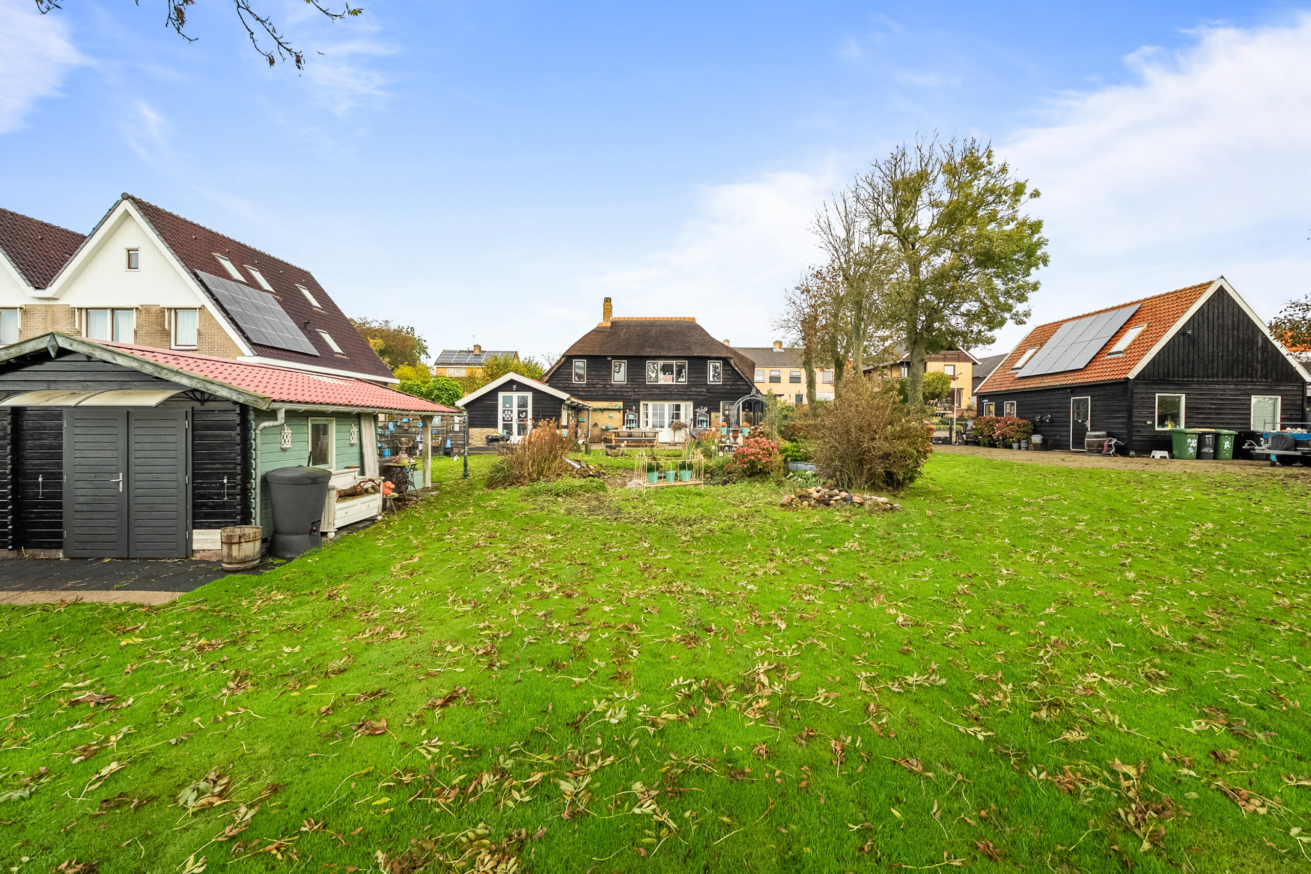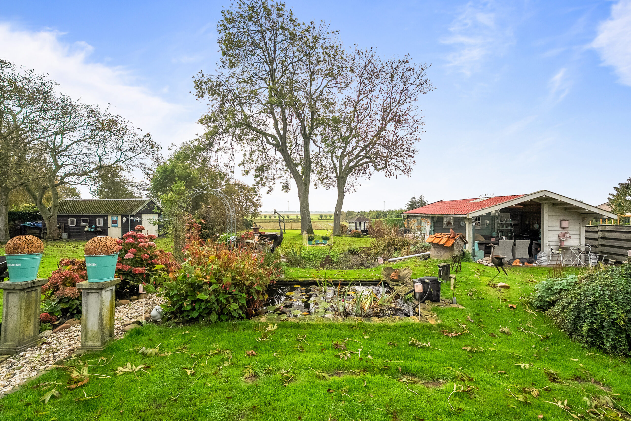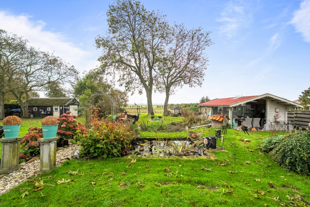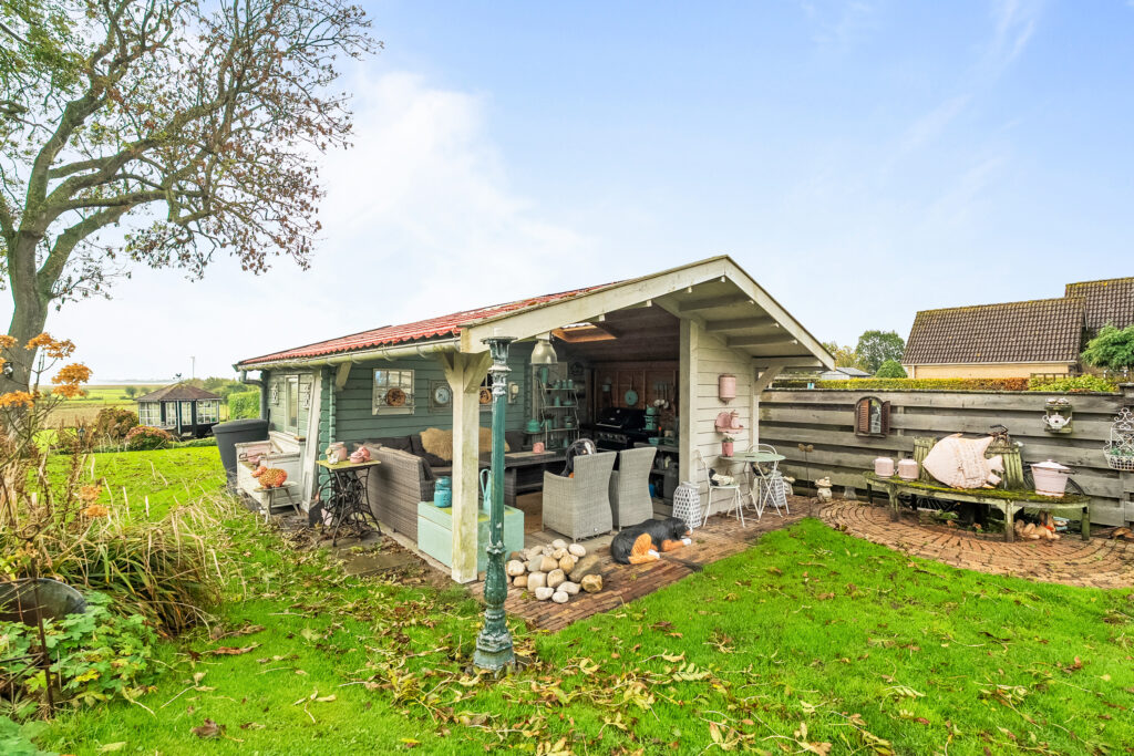 De tuin rondom de woning is een plaatje op zich en biedt volop ruimte voor ontspanning en buitenactiviteiten. Het beschutte terras is de ideale plek om in alle rust te genieten van de natuur en het prachtige uitzicht over het Amstelmeer. De ruime schuur met verdieping is een droom voor iedere hobbyist en biedt volop mogelijkheden voor het inrichten van een hobbyruimte, atelier, werkplaats of, na toestemming van de gemeente, zelfs een mantelzorgwoning. Achter op het perceel bevindt zich nog een extra garage, perfect voor het stallen van tuingereedschap of andere benodigdheden. Daarnaast is er een houten berging met overkapping aanwezig, ideaal voor extra opslag of als beschutte zit plek.